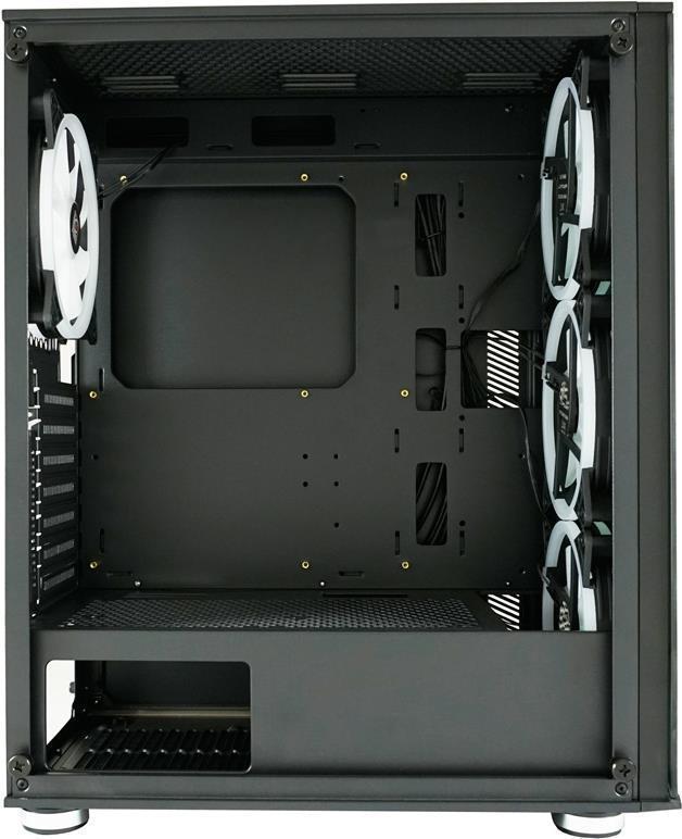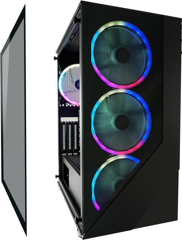 Mit dem getönten Hartglas-Frontpanel sowie vier bereits integrierten 140mm-RGB-Gehäuselüftern, wird ab Werk ein besonderer Blickfang geboten. Die gewünschte Farbe kann ganz einfach per Fernbedienung, am I/O-Panel oder durch die RGB-Mainboard-Software eingestellt werden. Wer etwas mehr Farbe in sein System bringen will, kann durch die getönte Seitenscheibe aus Hartglas das Innere des PCs ästhetisch zum Vorschein bringen.