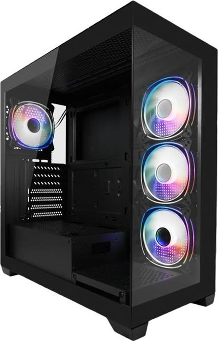 Das Midi-Tower-Gehäuse LC Power 715B bietet eine Mischung aus Stil und Funktionalität für Gamer und PC-Enthusiasten. Sein schlankes Design verfügt über eine Seitenwand aus gehärtetem Glas, die einen Blick auf die internen Komponenten ermöglicht und gleichzeitig die RGB-Beleuchtung zur Geltung bringt. Mit abnehmbaren Staubfiltern und integriertem Kabelmanagement sorgt dieses Gehäuse für einen optimalen Luftstrom und ein aufgeräumtes Innenleben, was die Wartung einfach und effizient macht.