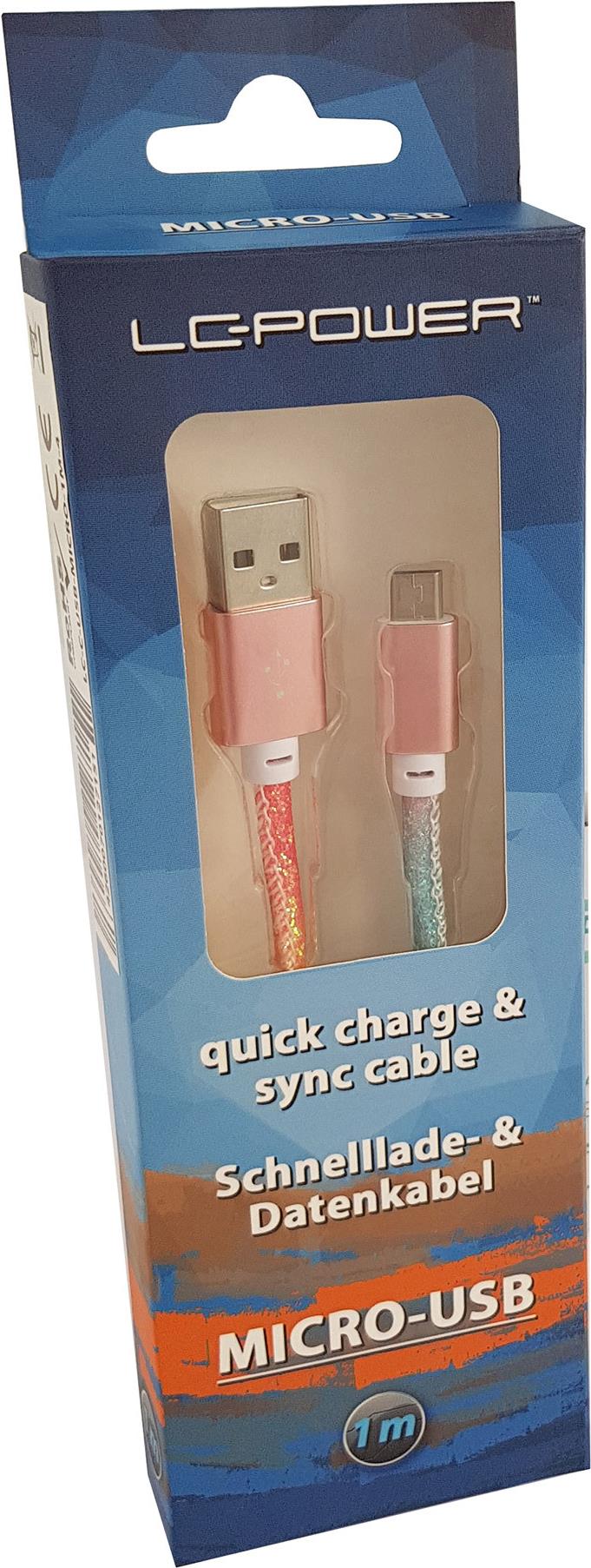 LC-POWER Kabel USB-Micro-1M-3 1m Rainbow Glitter,USB A auf Micro-USB (LC-C-USB-MICRO-1M-3)