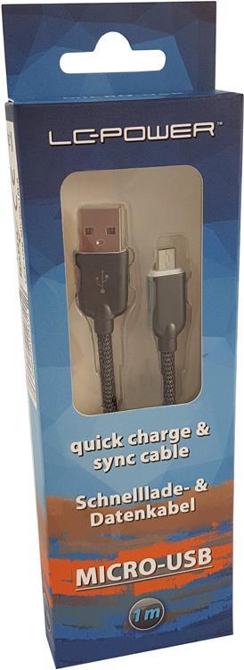 LC-POWER Kabel USB-Micro-1M-6 1m silver metal,USB A auf Micro-USB (LC-C-USB-MICRO-1M-6)