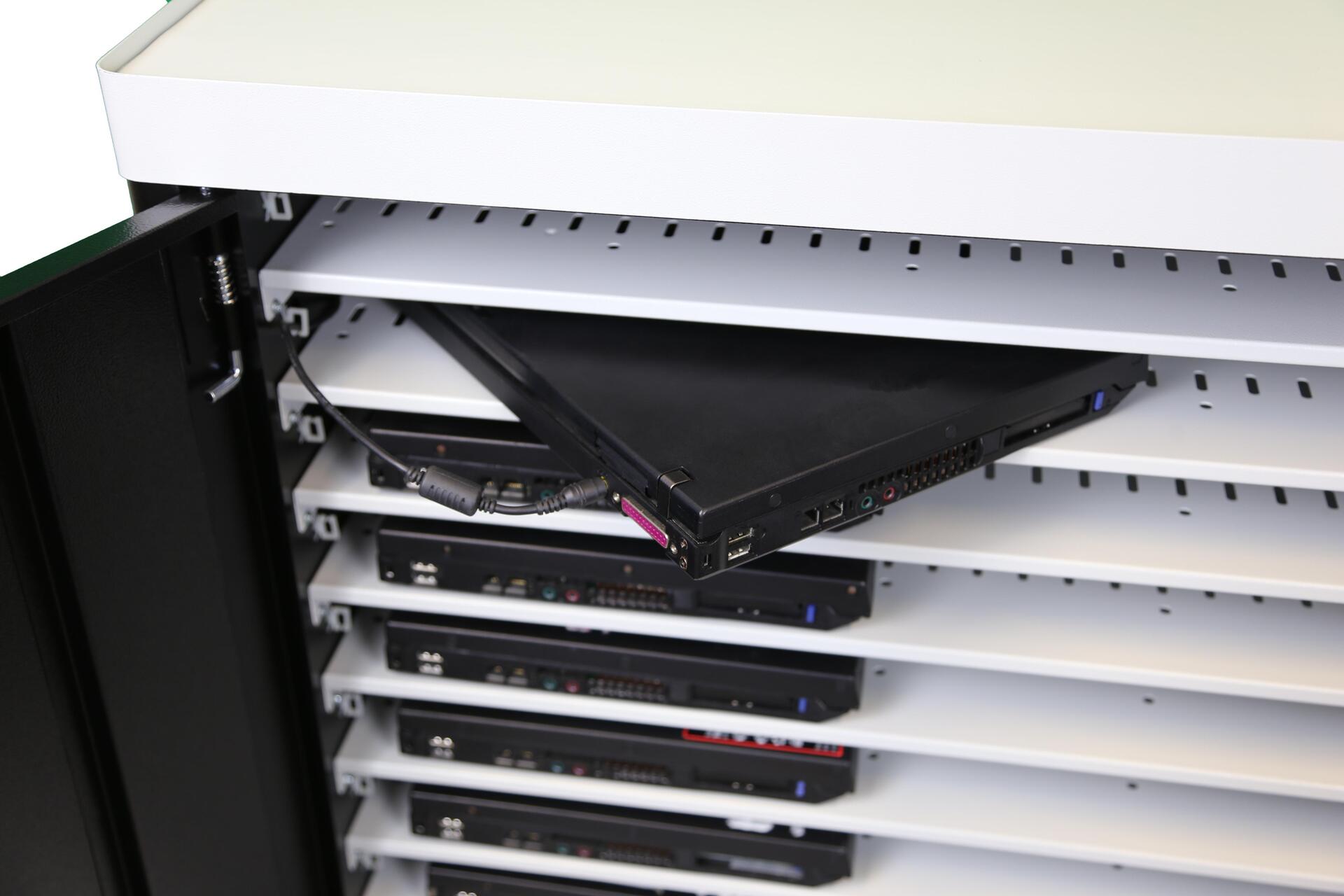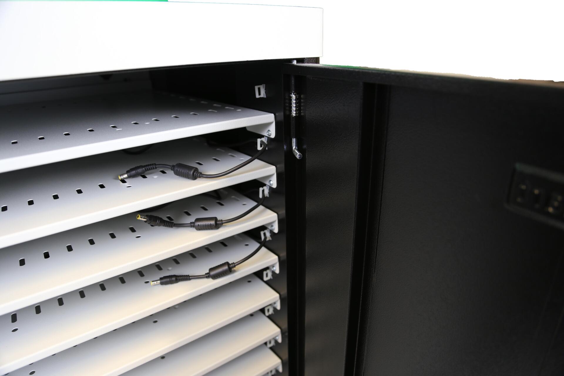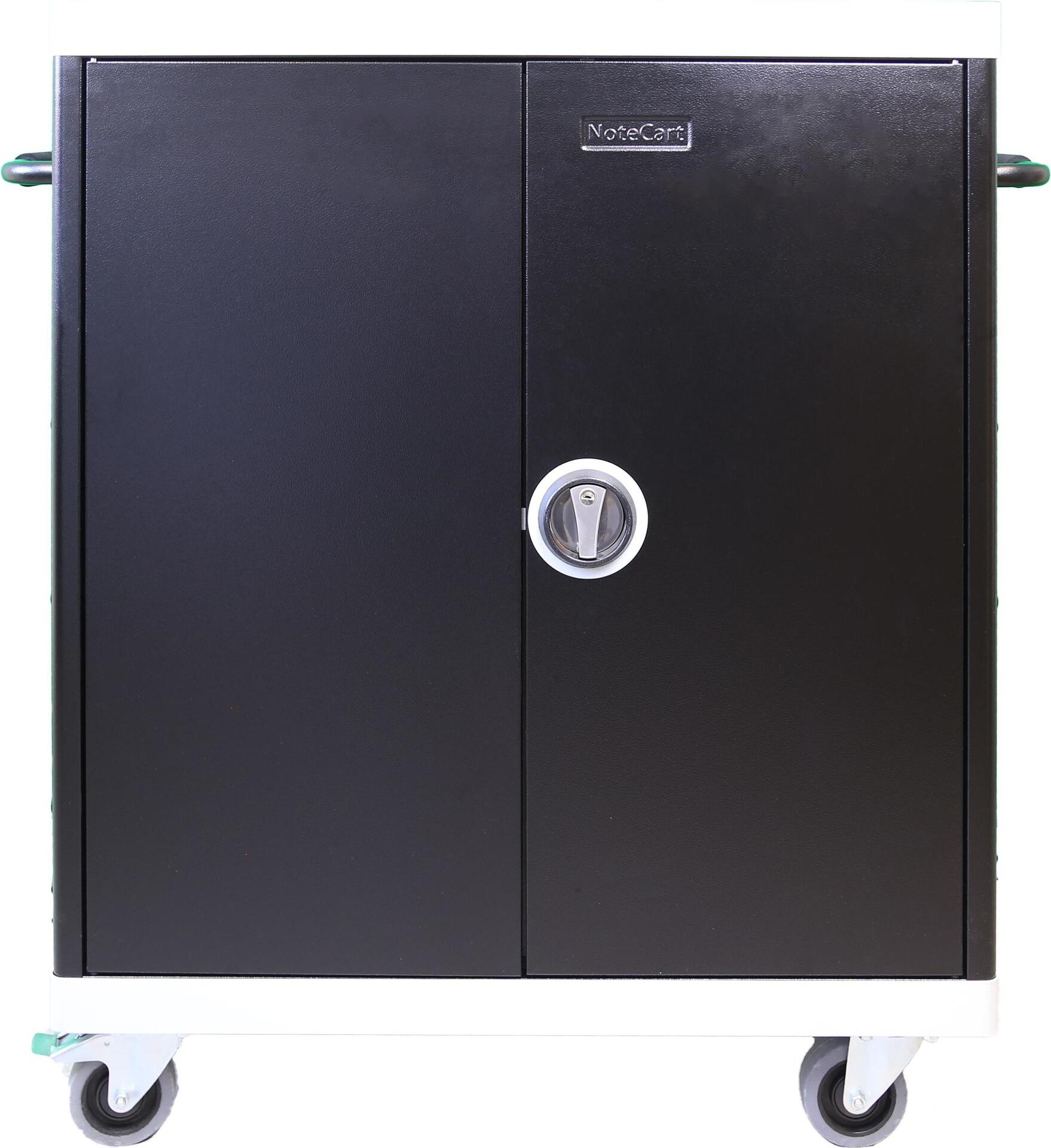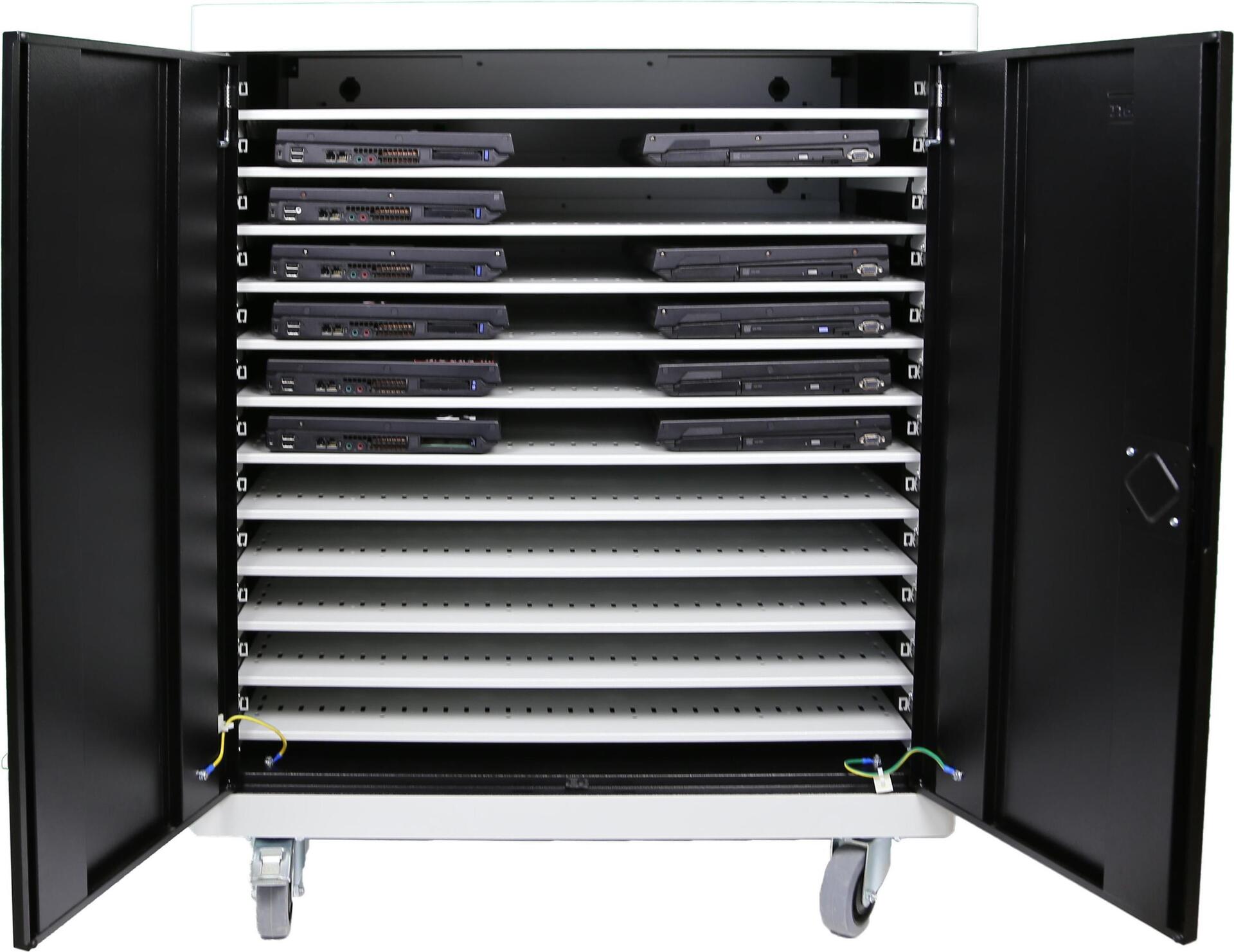 Leba NoteCart Unifit 24 (Schuko). Typ: Wagen zur Verwaltung tragbarer Geräte, Produktfarbe: Schwarz, Grau, Platzierung: Flur, Boden. Unterstützte tragbare Geräte: Notebook, Tablet, Smartphone, Unterstützte Geräteanschlüsse: AC, Maximale Bildschirmgröße: 43,2 cm (17" ). AC Eingangsspannung: 230 V, AC Eingangsfrequenz: 56/60 Hz, Ausgangsspannung: 230 V. Nachhaltigkeitszertifikate: RoHS. Breite: 870 mm, Tiefe: 700 mm, Höhe: 1065 mm (NCU-24-FH-SC)