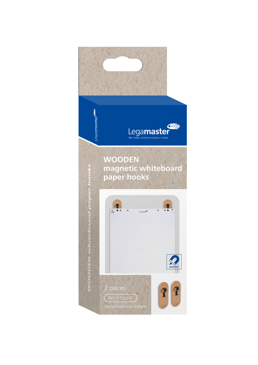 Holzteile aus nachhaltiger Forstwirtschaft. Magnethaken in moderner Holzoptik. Die Haken ermöglichen die Verwendung von Flipchart-Papier in Kombination mit magnetischen Whiteboards. Für einen nachhaltigen Arbeitsplatz: ...