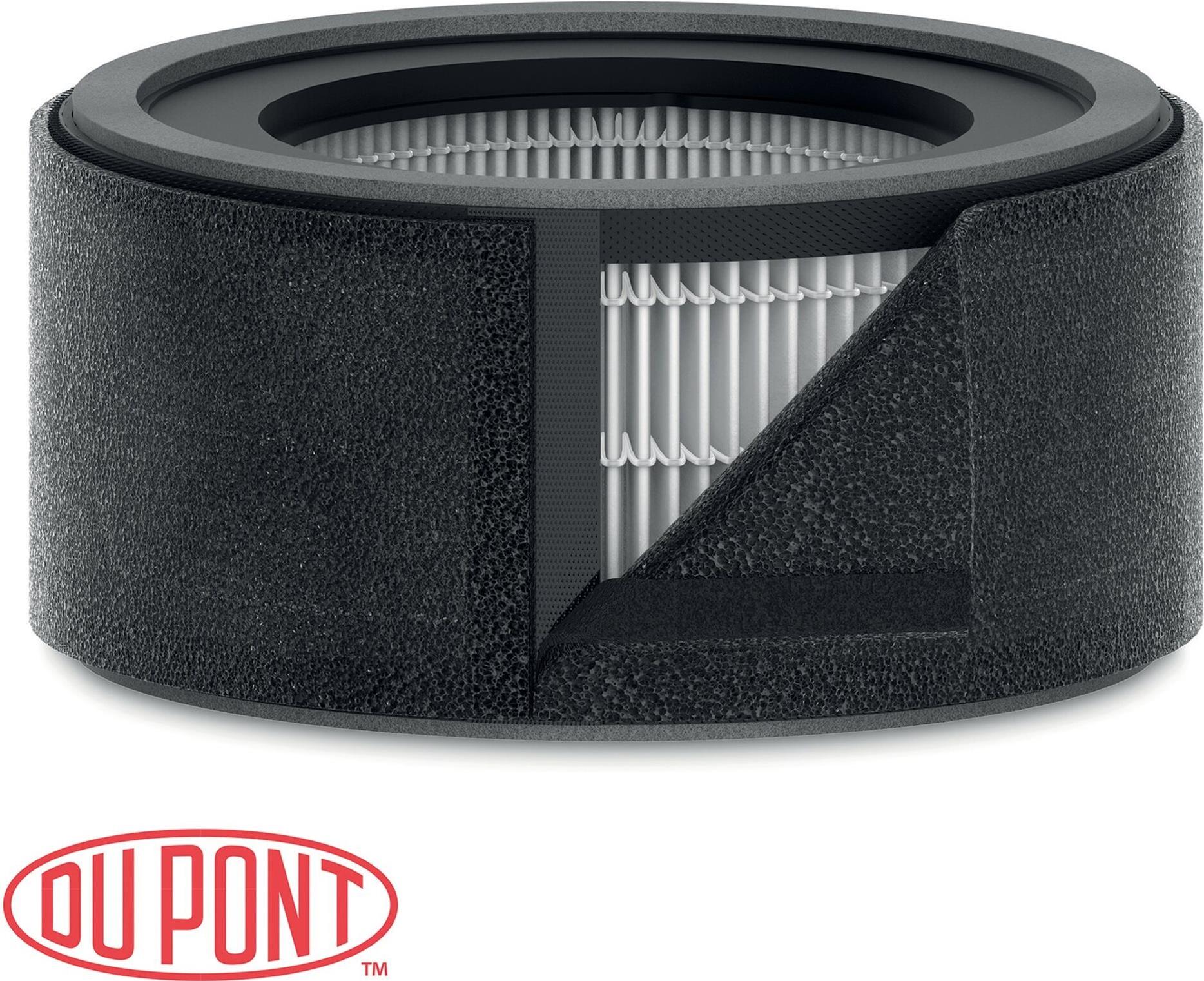 Das All-in-One-Filtersystem kombiniert einen H13 HEPA-Filter mit einem Aktivkohle-Vorfilter. Dieser Kombinationsfilter wurde entwickelt, um ultrafeine luftübertragene Partikel wie Bakterien, Viren, Staub, Allergene, Tierhaare und -hautschuppen, flüchtige organische Verbindungen (VOC) und geruchsintensive Gase aufzufangen.