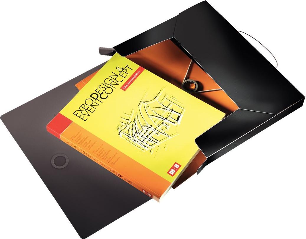 Qualitäts-Ablagebox aus PP im zeitlosen Solid Design und Duo-Optik mit leuchtender Außenfarbe und Innenseite in einem warmen Grauton. Ideal zum Transport oder zur Ablage von umfangreichen Unterlagen, Heftern oder anderen Solid Produkten.