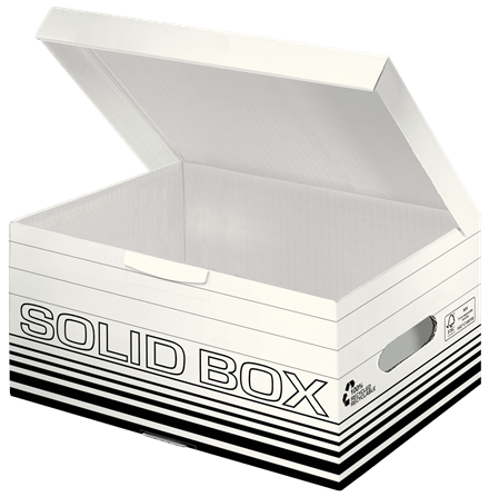 Leitz Solid Box ist die Archivierungslösung fu¨r die Nutzung im Bu¨ro oder Zuhause. Starkes Material sowie doppelter Boden und Wände machen die Boxen ideal fu¨r Aufbewahrung, Versand oder Transport von Dokumenten und ...
