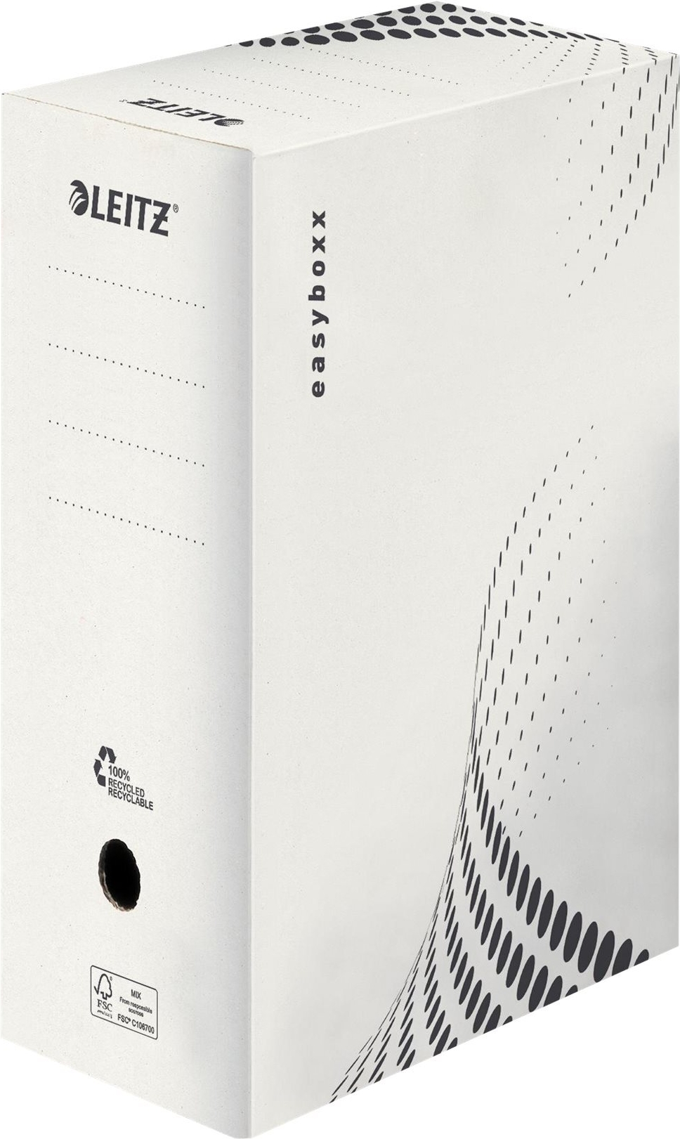 LEITZ Archiv-Schachtel easyboxx, weiß (B)150 mm 100% geriffelter Recyclingkarton, doppelte Schließklappen, - 25 Stück (6133-00-00)