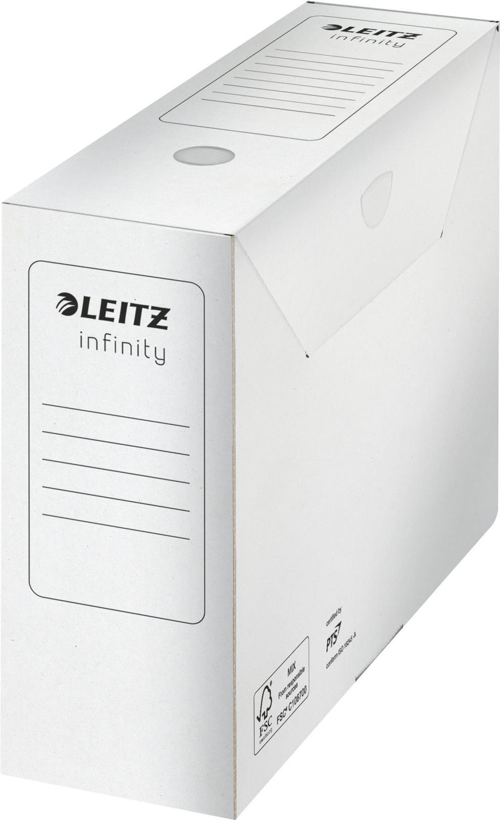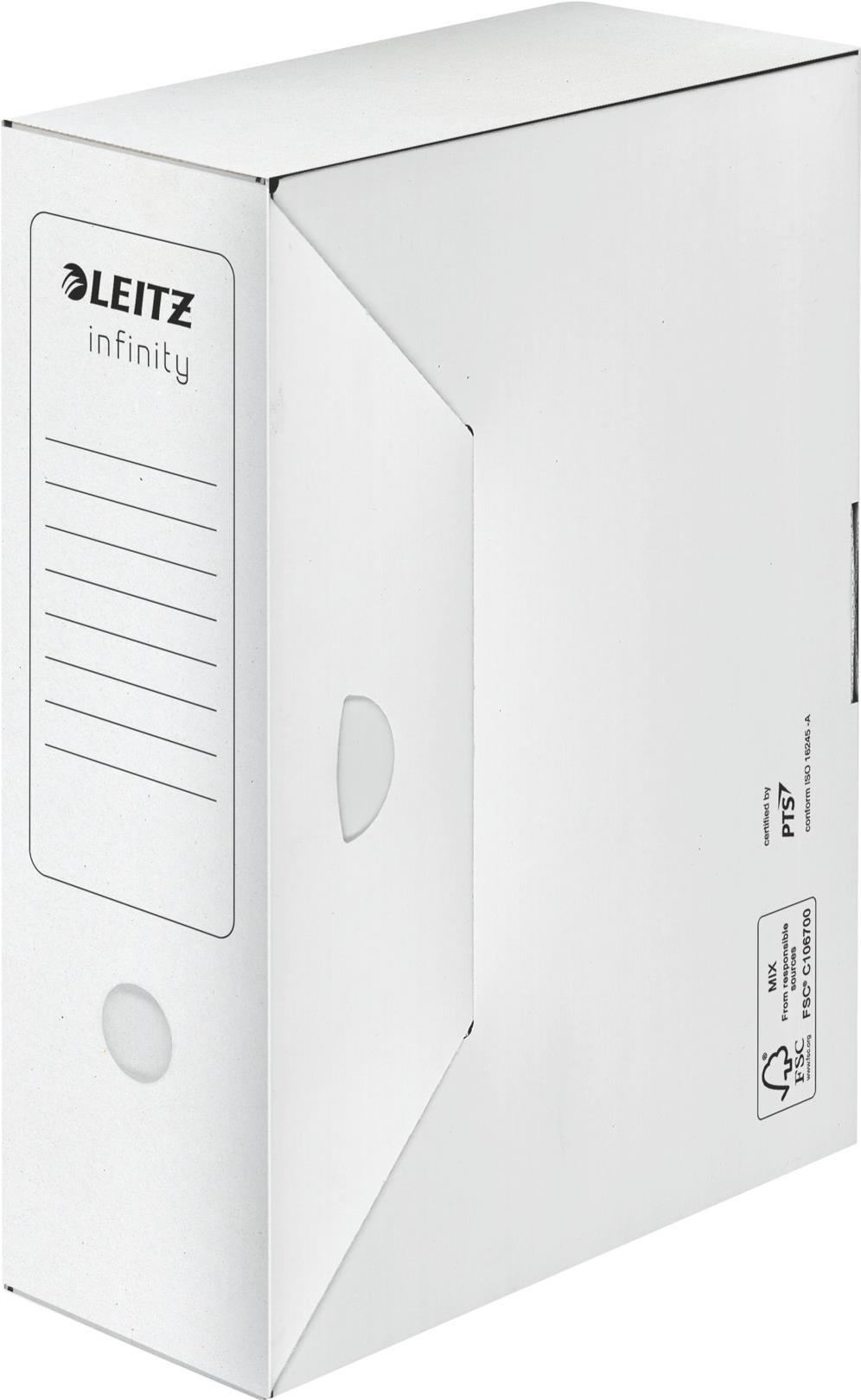 LEITZ Archiv-Schachtel Infinity, weiß, säurefrei (B)100 mm für Format DIN A4+, mit Verschlusslasche, aus 100% säure- - 10 Stück (6089-00-00)
