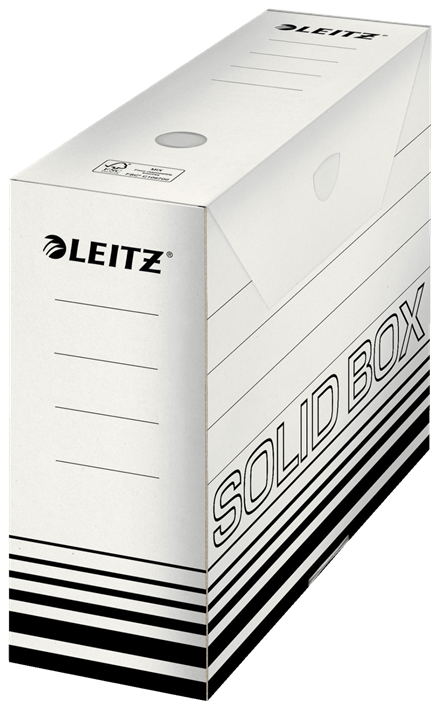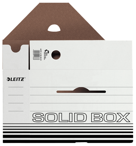 Leitz Solid Box ist die Archivierungslösung fu¨r die Nutzung im Bu¨ro oder Zuhause. Starkes Material sowie doppelter Boden und Wände machen die Boxen ideal fu¨r Aufbewahrung, Versand oder Transport von Dokumenten und schweren Dingen. Mit praktischem Automatik-Aufbau in wenigen Sekunden einsatzbereit. Extrem haltbar und stabil.