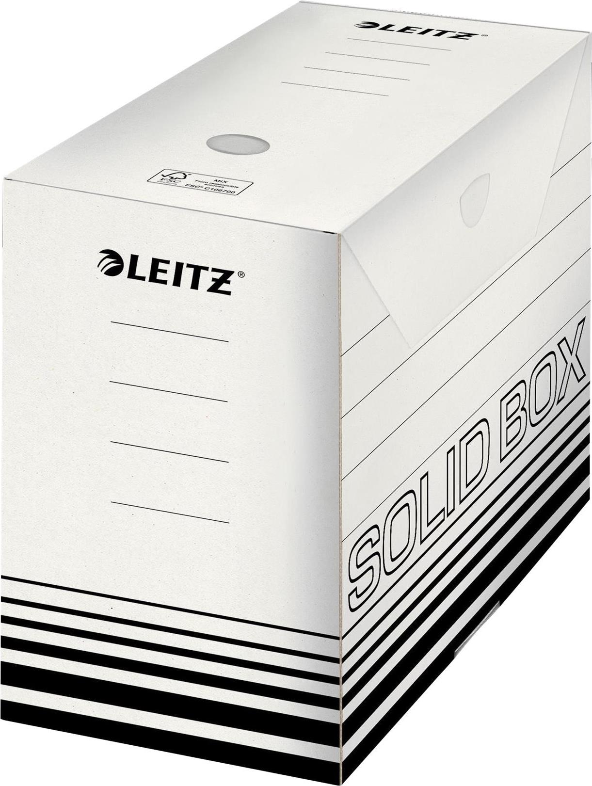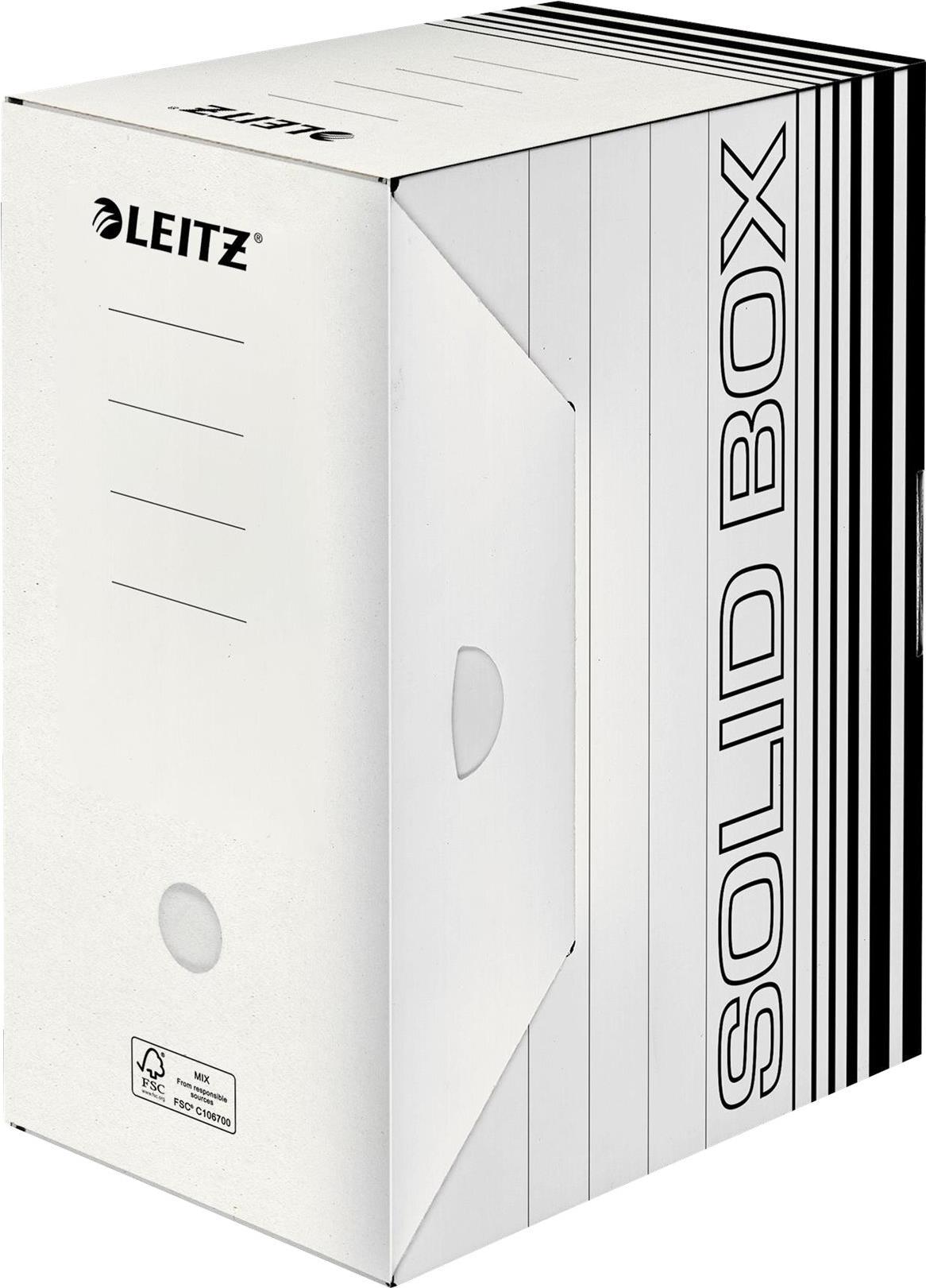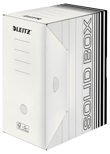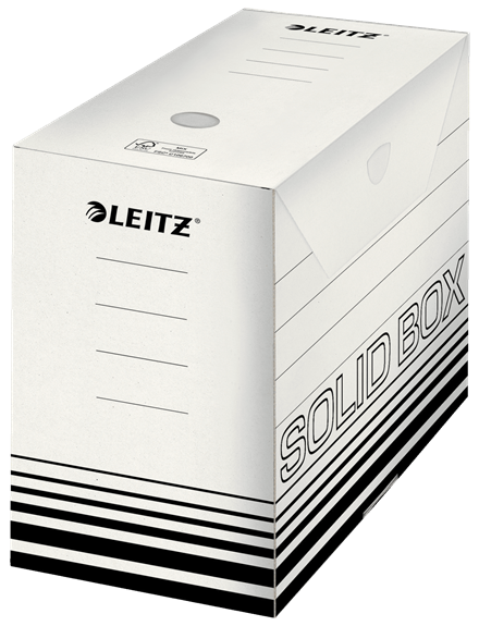 Leitz Solid Box ist die Archivierungslösung fu¨r die Nutzung im Bu¨ro oder Zuhause. Starkes Material sowie doppelter Boden und Wände machen die Boxen ideal fu¨r Aufbewahrung, Versand oder Transport von Dokumenten und schweren Dingen. Mit praktischem Automatik-Aufbau in wenigen Sekunden einsatzbereit. Extrem haltbar und stabil.