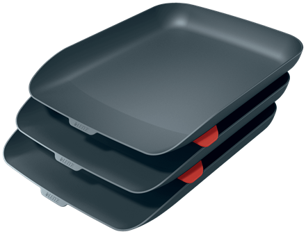 LEITZ Briefablagen-Set Cosy, DIN A4, Polystyrol, grau matte Oberfläche, bis zu 3 Stück stapelbar, Lieferung inkl. - 1 Stück (5358-20-89)