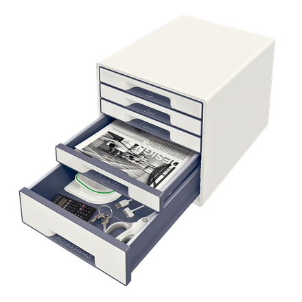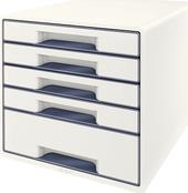 Esselte-Leitz LEITZ Schubladenbox WOW CUBE, 5 Schübe, perlweiß/grau für Format DIN A4 Maxi, Hochglanz, Schubladen mit Auszugs - 1 Stück (5214-20-01)
