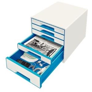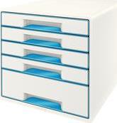 Esselte-Leitz LEITZ Schubladenbox WOW CUBE, 5 Schübe, perlweiß/blau für Format DIN A4 Maxi, Hochglanz, Schubladen mit Auszugs - 1 Stück (5214-20-36)