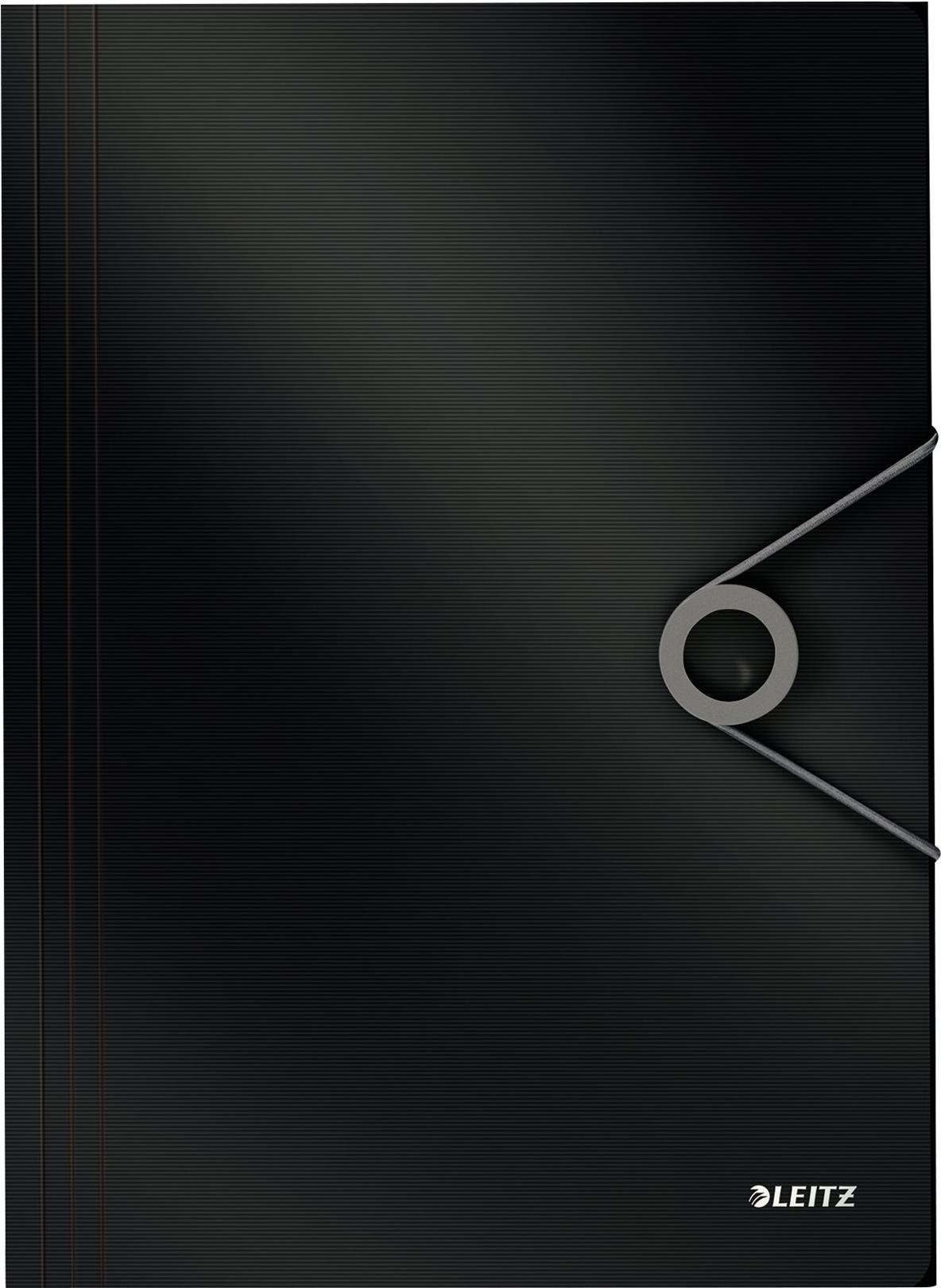 LEITZ Eckspannermappe Solid, DIN A4, PP, schwarz mit 3 seitlichen Schutzklappen, innen grau, - 1 Stück (4563-10-95)