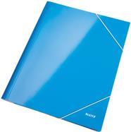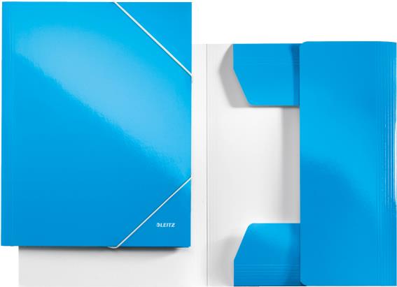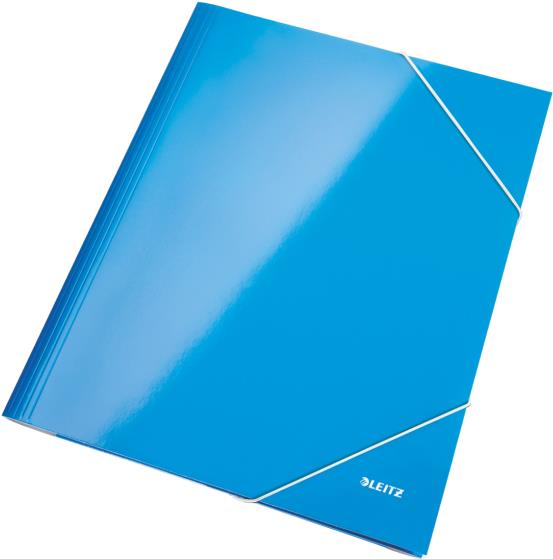 LEITZ Eckspannermappe WOW, DIN A4, Karton, blau-metallic PP-laminierter Karton, glänzend, 3 seitliche Schutzklappen (3982-00-36)