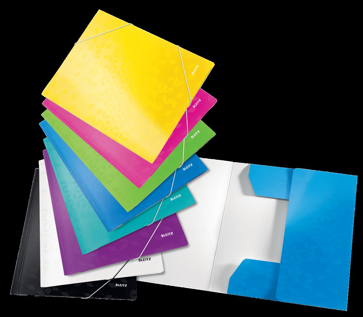 Auffällige Eckspannermappe in brillanten WOW Farben. Die geprägte, laminierte Oberfläche verleiht der Eckspannermappe ein glänzendes und hochwertiges Design.