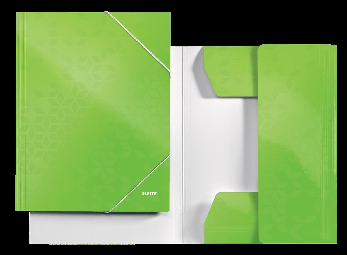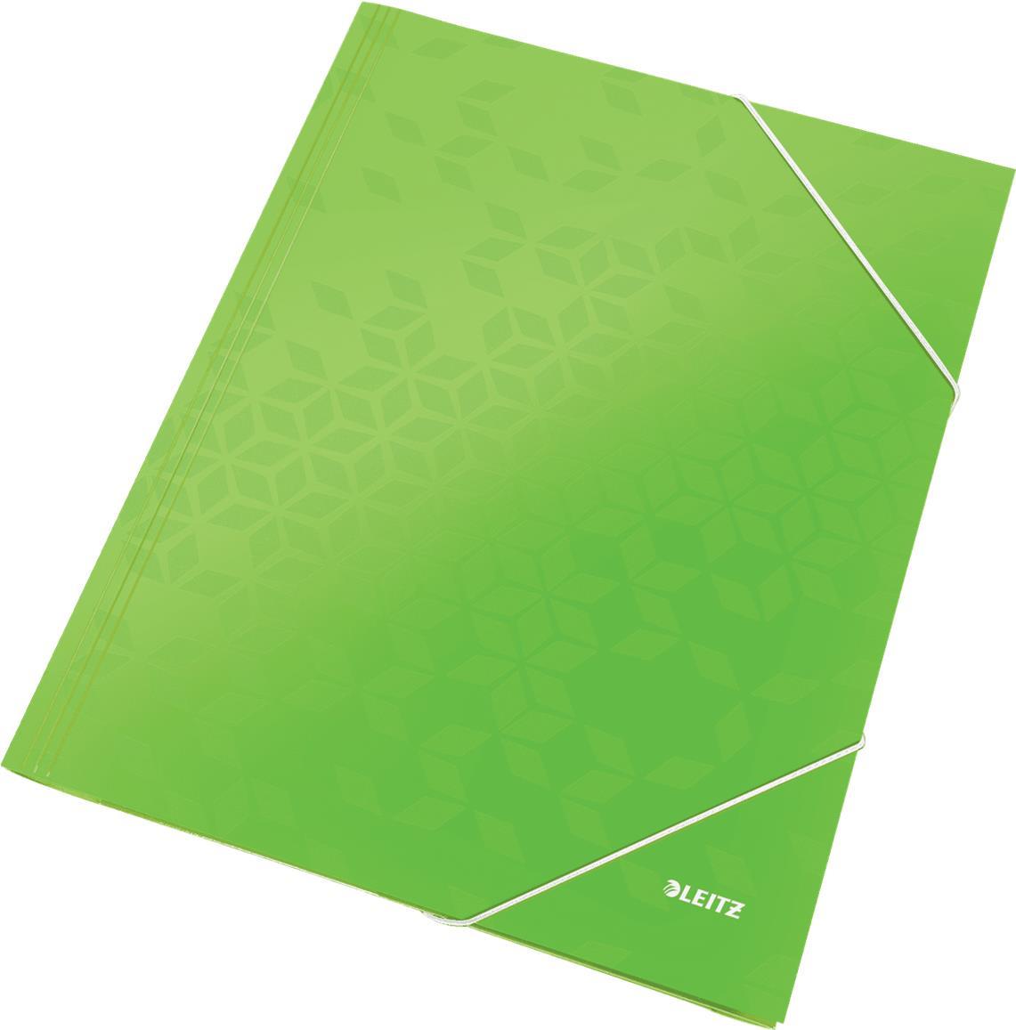 LEITZ Eckspannermappe WOW, DIN A4, Karton, grün PP-laminierter Karton, glänzend, 3 seitliche Schutzklappen, - 1 Stück (3982-00-54)