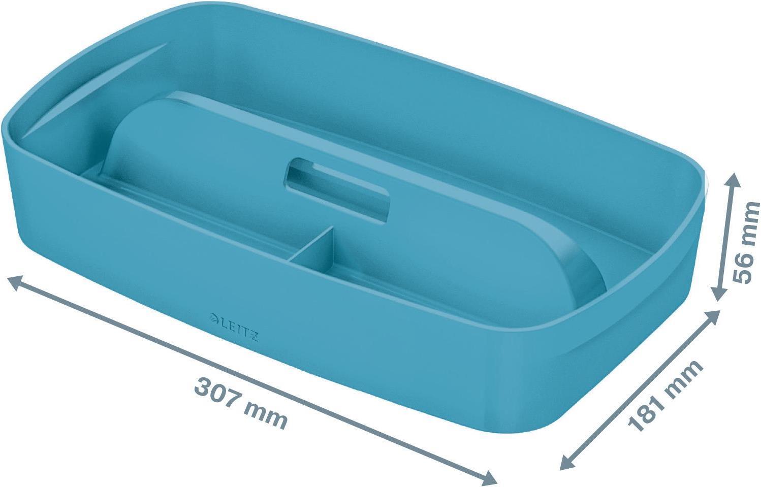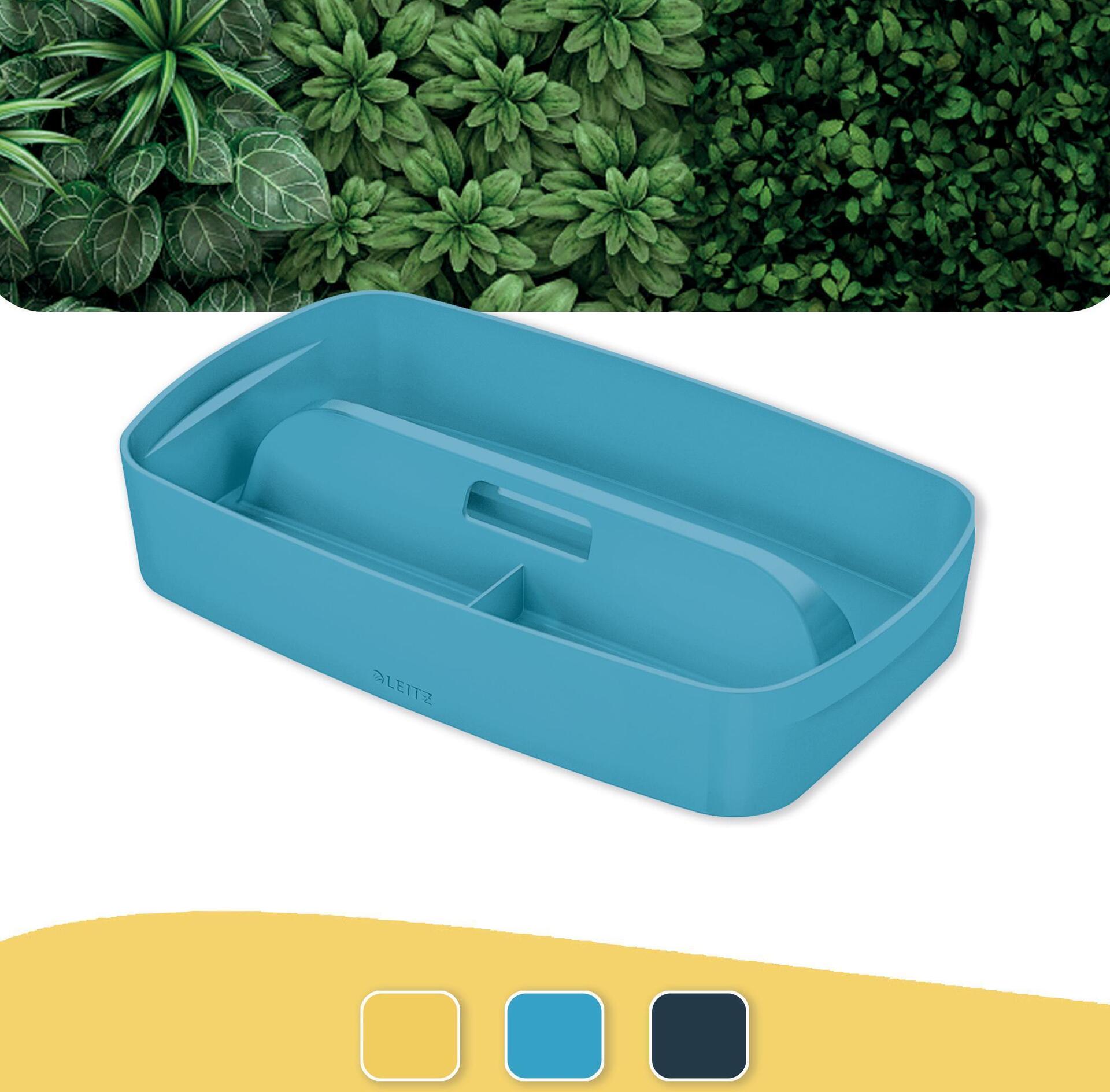 Fühlen Sie sich mit dem Cosy Sortiment von Leitz wie zu Hause, wo auch immer Sie sind. Mit seinem minimalistischen Design und den einladenden matten Farben können Sie Ihrem Arbeitsbereich Stil und Farbe verleihen. Der robuste Organiser ist tragbar und für die Aufbewahrung von Büroutensilien, Bastelzubehör oder auch Make-up geeignet. Der MyBox Cosy Organiser ist lebensmittelecht zertifiziert und eignet sich für warme und kalte Speisen. So können beispielsweise in Kantinen, Teeküchen, Rezeptionen oder daheim Kaffee, Tee, Milch und Zucker gelagert. Der Organiser ist Teil des modularen MyBox Aufbewahrungssystems und kann zusammen mit der Leitz MyBox Cosy Aufbewahrungsbox Klein verwendet werden. Er ist die perfekte Ergänzung für Ihr Zuhause oder Ihr Büro, damit Sie den ganzen Tag entspannt und produktiv bleiben.