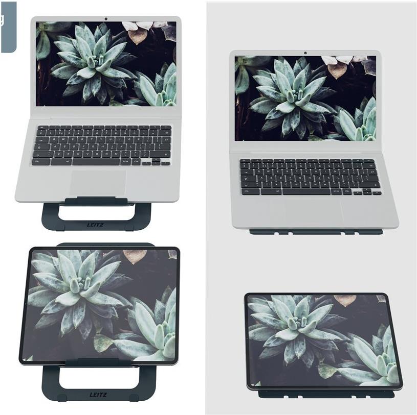Maximieren Sie den Komfort an Ihrem Arbeitsplatz und unterwegs mit dem ergonomisch gestalteten Leitz Ergo Ultraflachen höhenverstellbaren Aluminium-Laptopständer. Wählen Sie aus 5 verschiedenen Höheneinstellungen, um Ihren Laptop-Bildschirm in einen ergonomischen und bequemen Blickwinkel zu bringen. Auch für ein Tablet geeignet. Mit seinem SlimLift Design (SLD) und der schützenden Baumwollhülle ist dieser Laptopständer einfach zu benutzen und passt in jede Tasche, um unterwegs verwendet oder in einer Schublade aufbewahrt zu werden. Der verstellbare Laptopständer ist aus starkem und haltbarem Aluminium gefertigt und bietet eine offene Belüftung, die die Luftzirkulation um Ihren Laptop verbessert. Die Verpackung ist plastikfrei und zu 100 % recycelbar. Dieser moderne und minimalistische Laptopständer ist ideal für zu Hause, im Büro oder unterwegs, um den Komfort zu erhöhen und die Produktivität zu maximieren. Wir haben es uns zur Aufgabe gemacht, Lösungen anzubieten, die es jedem ermöglichen, bei der Arbeit und darüber hinaus erfolgreich zu sein und sich wohlzufühlen. Kombinieren Sie den Laptopständer mit vielen anderen Leitz Ergo Produkten, um einen flexiblen Arbeitsplatz zu gestalten, der Ihnen den regelmäßigen Wechsel zwischen Sitzen, Stehen und Bewegen ermöglicht. Bleiben Sie aktiv - FEEL GOOD mit Leitz.