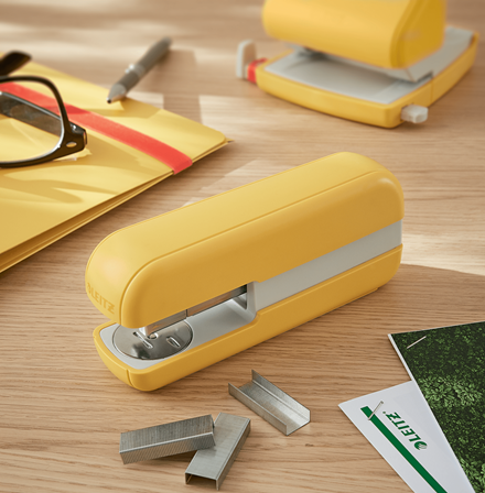 Fühlen Sie sich mit dem Cosy Sortiment von Leitz wie zu Hause, wo auch immer Sie sind. Mit seinem minimalistischen Design und den einladenden matten Farben können Sie Ihrem Arbeitsbereich Stil und Farbe verleihen. Das Cosy Heftgerät ist robust und zuverlässig und heftet bis zu 30 Blatt. Die patentierte Direct Impact Technologie garaniert eine stets perfekte Heftung. Dieses hochwertige Heftgerät ist die perfekte Ergänzung für Ihr Zuhause oder Büro, damit Sie den ganzen Tag entspannt und produktiv bleiben.