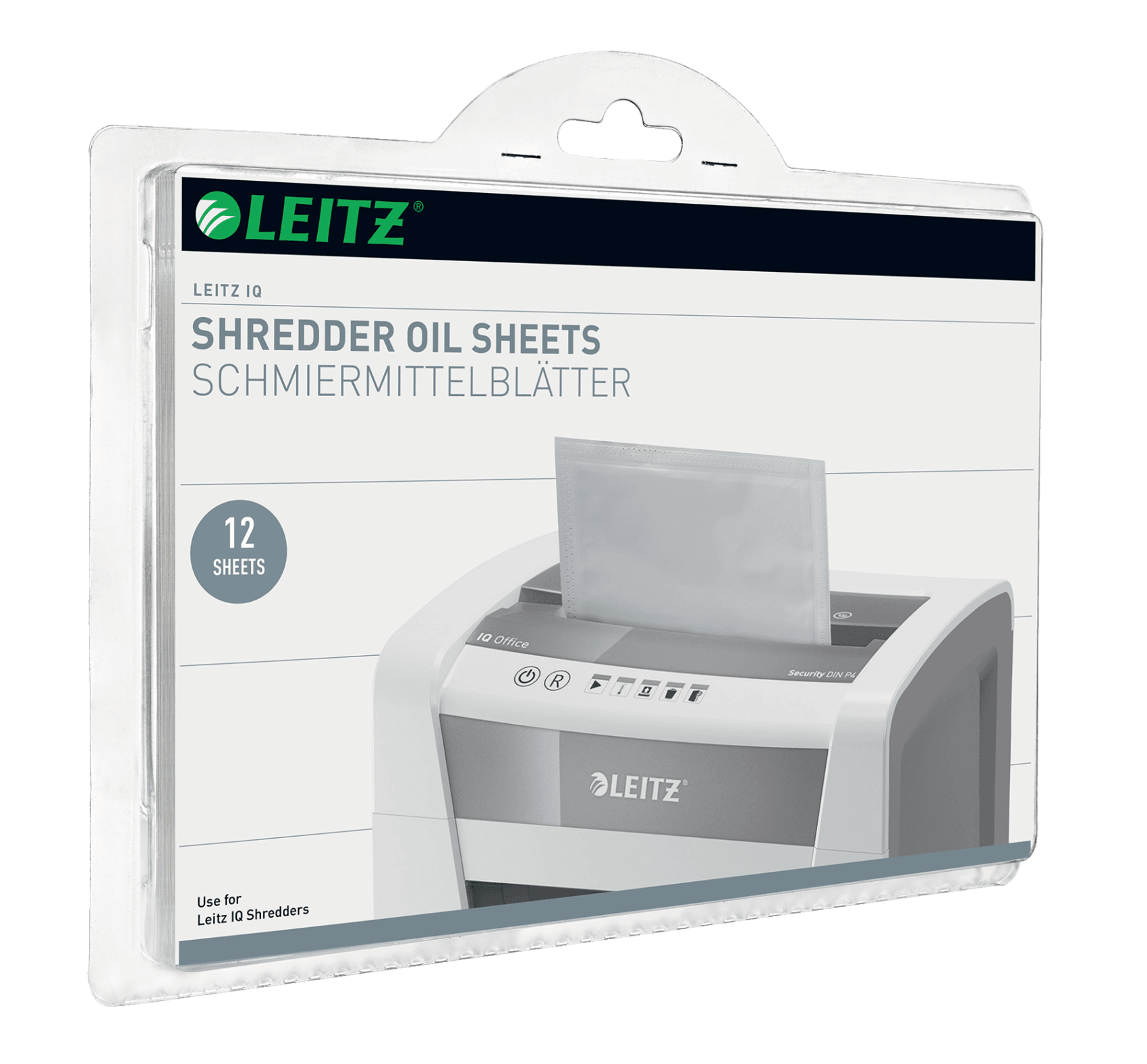Wie alle elektrischen Geräte sollten auch Leitz IQ Aktenvernichter gepflegt werden, damit sie in Topform bleiben. Mit Leitz IQ Ölblättern geht das ganz unkompliziert. Verbessern die Schredderleistung, indem sie die Schneiden von Staub und Papierrückständen befreien.