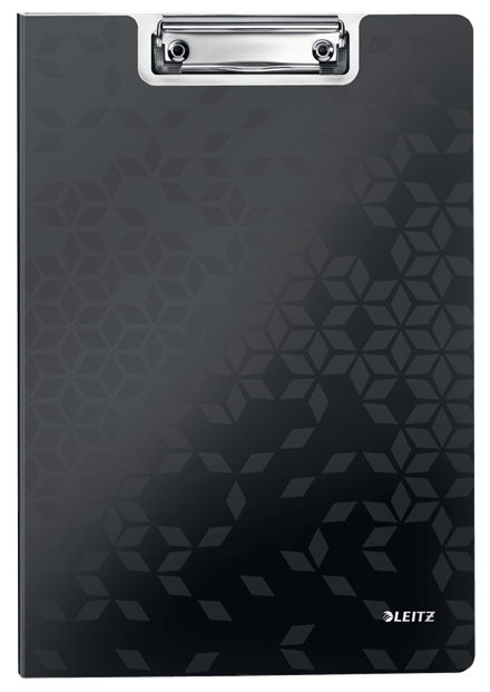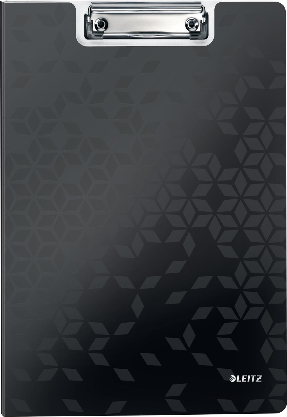 LEITZ Klemmbrett-Mappe WOW, DIN A4, Polyfoam, schwarz- metallic, Oberflächenstruktur mit 3D-Prägung, innen hellgrau - 1 Stück (4199-00-95)