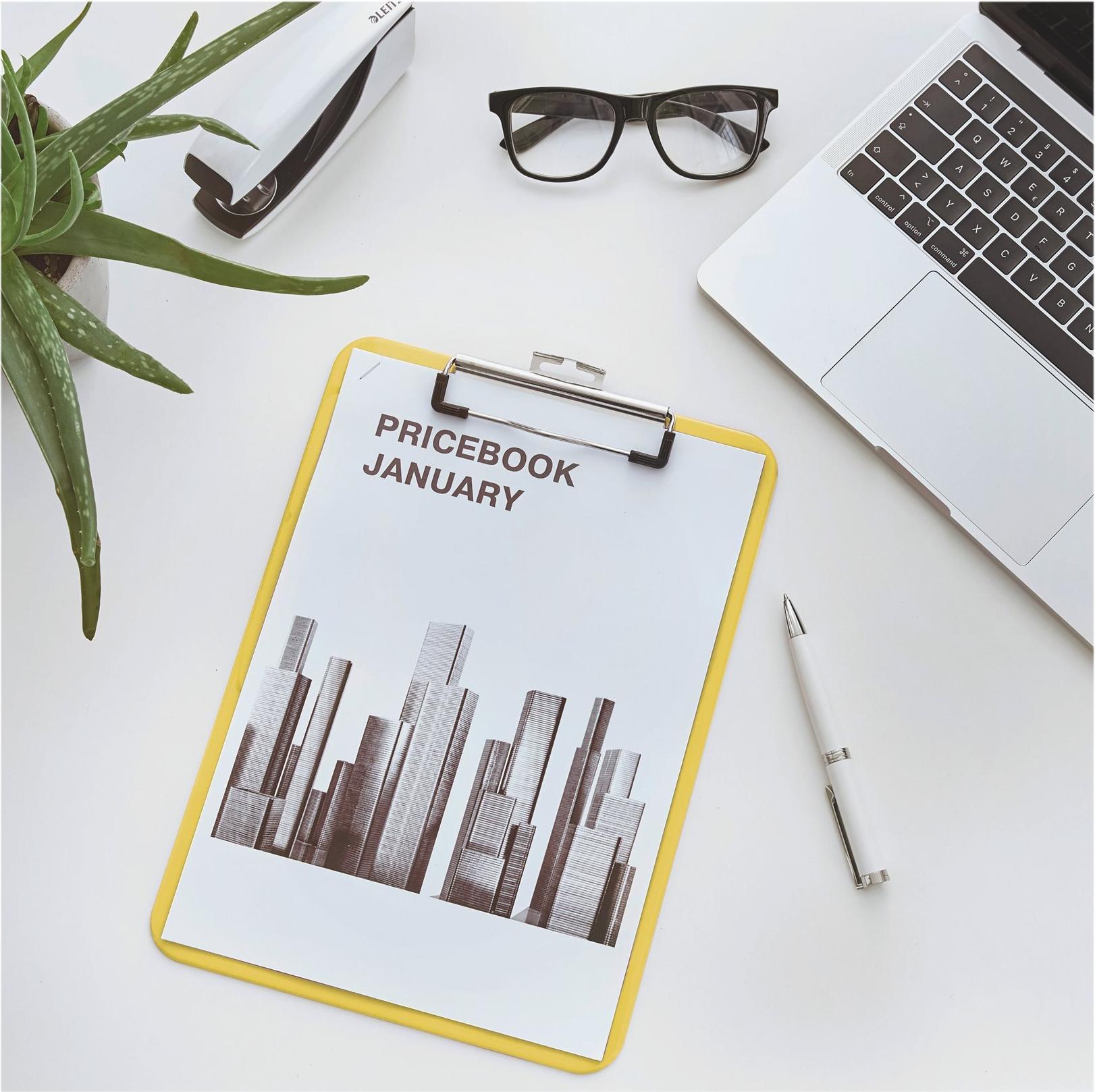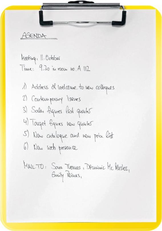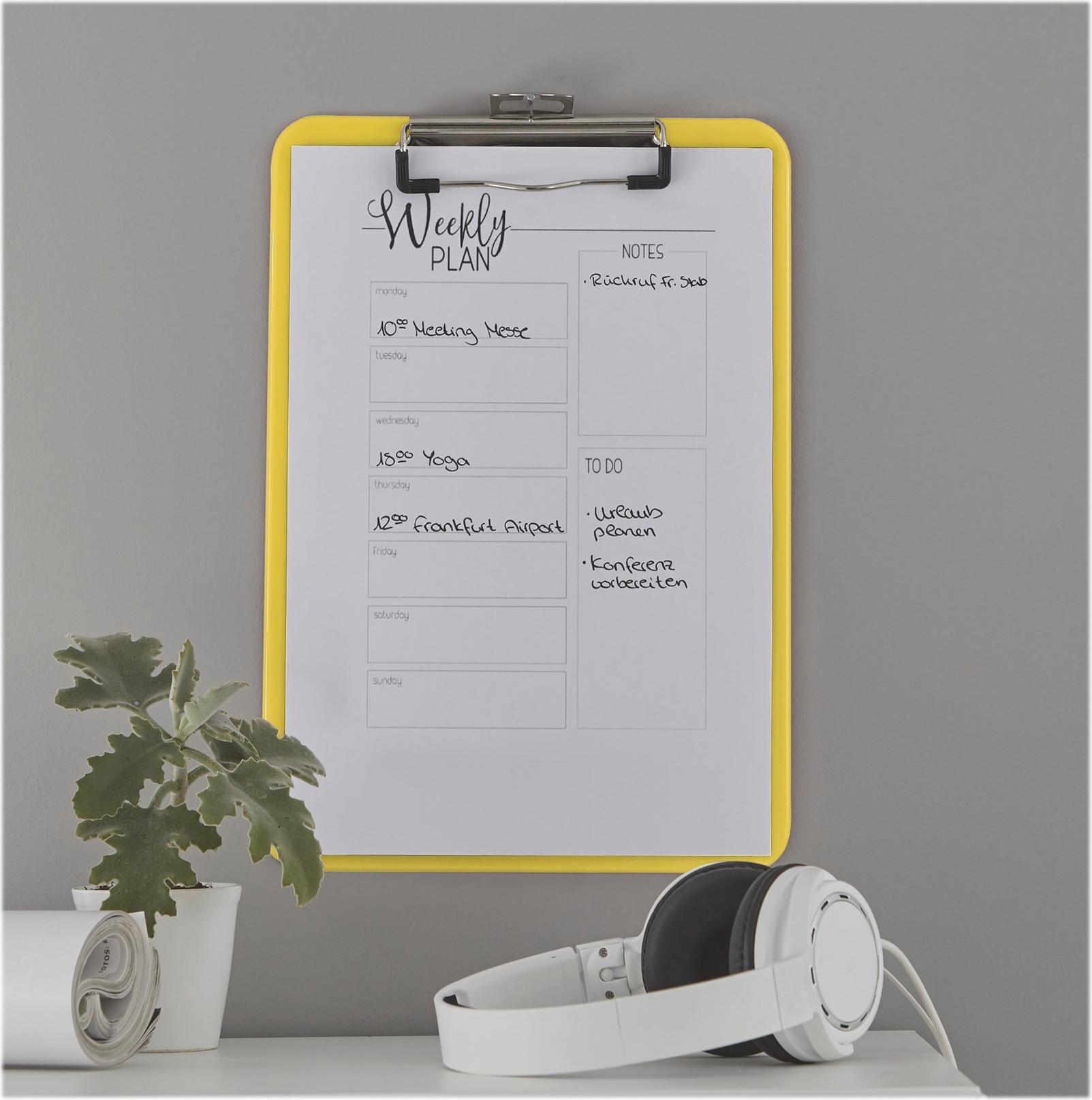 Hochwertiges Klemmbrett aus Polystyrol in brillanten WOW Farben. Ideal als Schreibunterlage unterwegs.