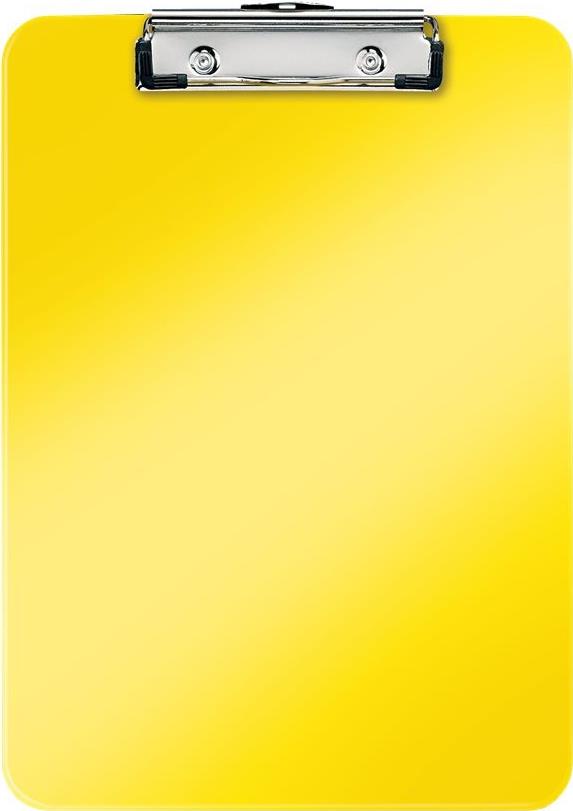 LEITZ Klemmbrett WOW, Polystyrol, gelb-metallic mit Metall-Klemmmechanik, Fassungsvermögen: 80 Blatt - 1 Stück (3971-00-16)