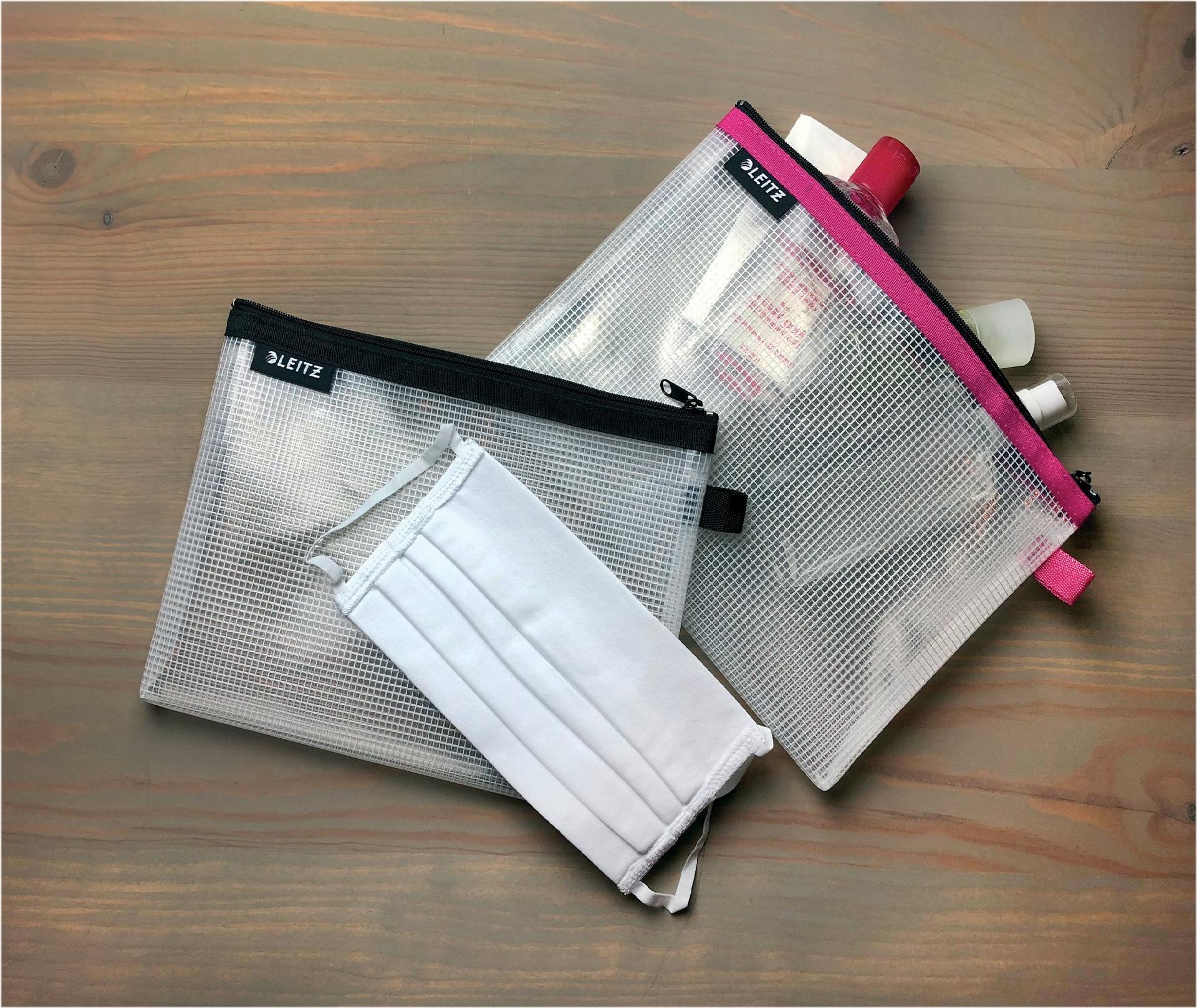 Hochwertige Beutel zum Transport von Kosmetika im Handgepäck. Der erweiterbare Boden bietet zusätzlichen Platz für kleine Flaschen mit Flüssigkeiten.