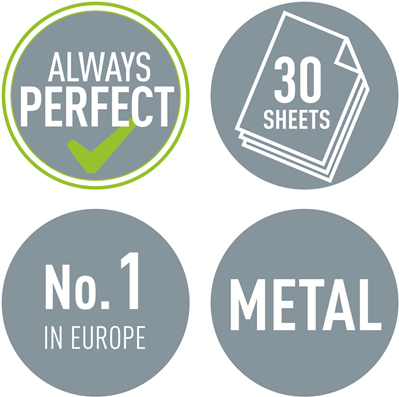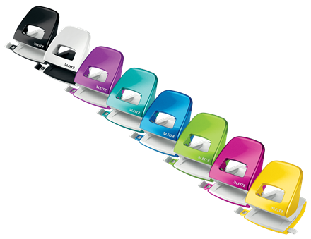 Metalllocher in auffallenden WOW Farben für die tägliche Nutzung. Stabil und zuverlässig. Locher mit patentierter, ergonomischer Griffmulde und ultra-scharfen Lochstempeln für weniger Kraftaufwand.