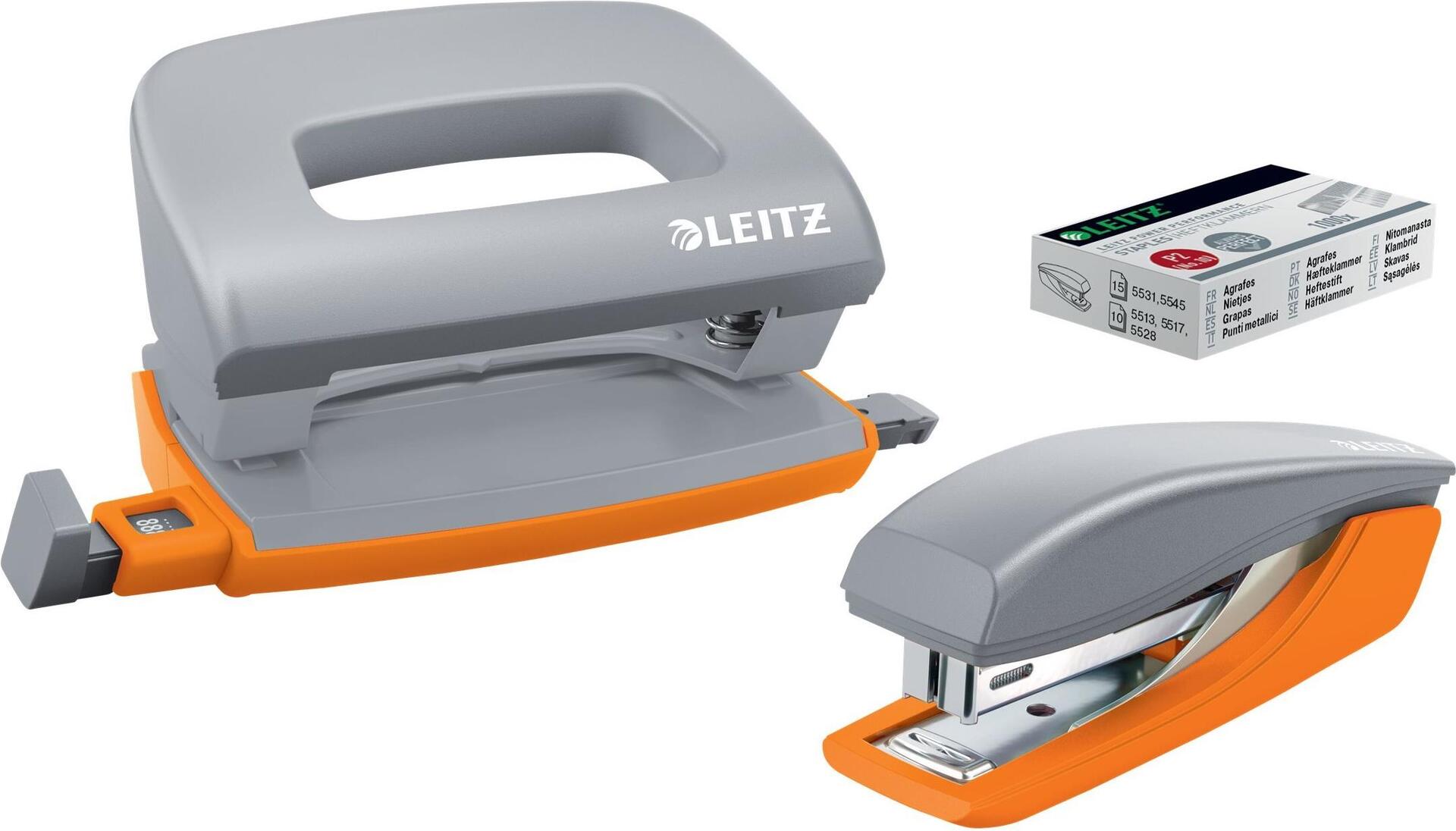 LEITZ Mini Heftgerät- & Locher-Set Urban Chic, dunkelgrau in Duo-Optik, in Blisterverpackung, - 1 Stück (5599-60-88)