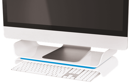 • LEITZ Monitorständer Ergo WOW, aus Kunststoff, weiß/blau passend für Bildschirm bis 68,58 cm (27"), bei Nichtgebrauch - 1 Stück (6504-00-36)
