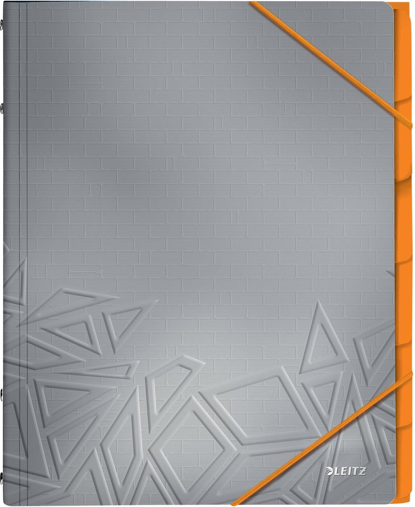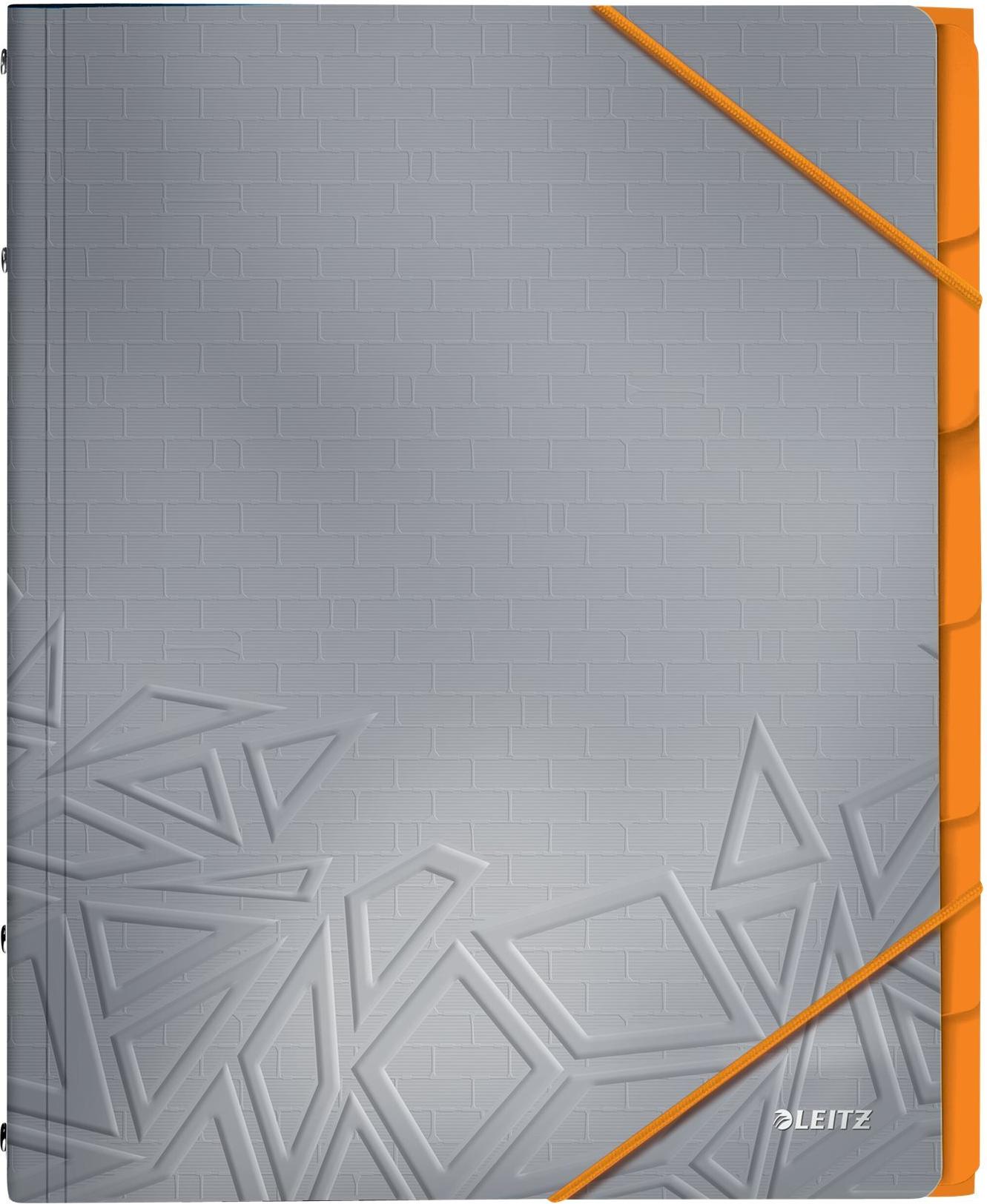 LEITZ Ordnungsmappe Urban Chic, DIN A4, PP, 6 Fächer, grau Duo-Optik, mit Musterprägung, mit 3 Schutzklappen am - 1 Stück (3949-00-88)