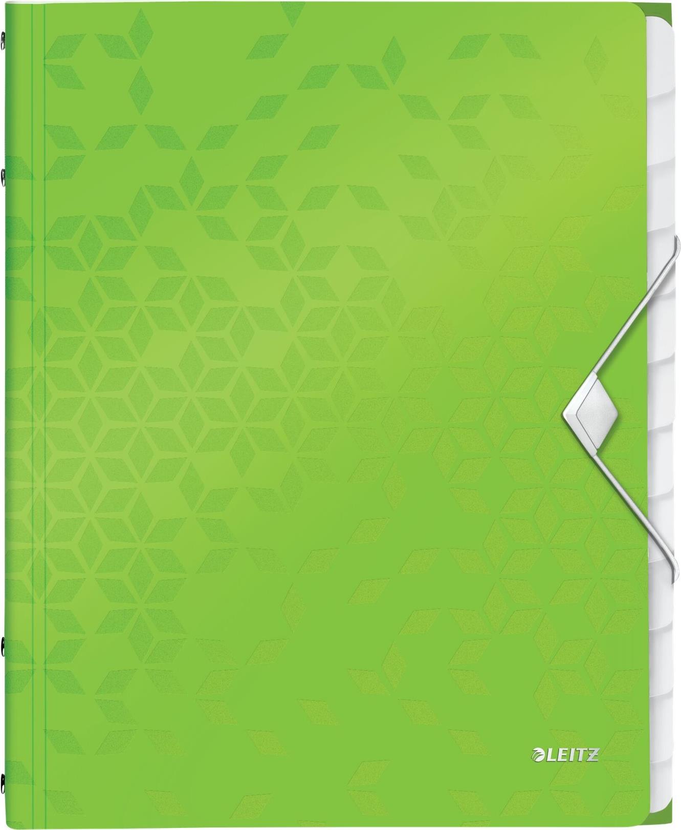 LEITZ Ordnungsmappe WOW, DIN A4, PP, 12 Fächer,grün-metallic laminierte Oberfläche, Oberflächenstruktur mit 3D-Prägung, - 1 Stück (4634-00-54)