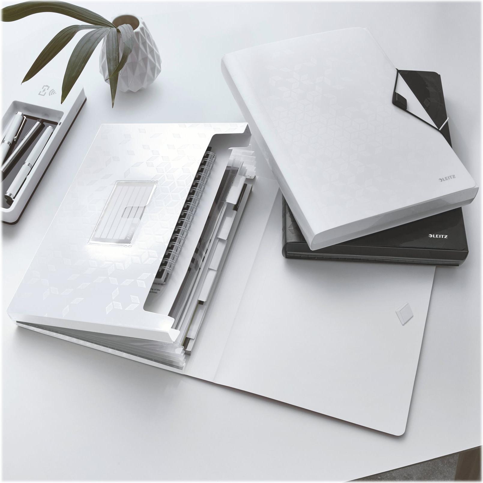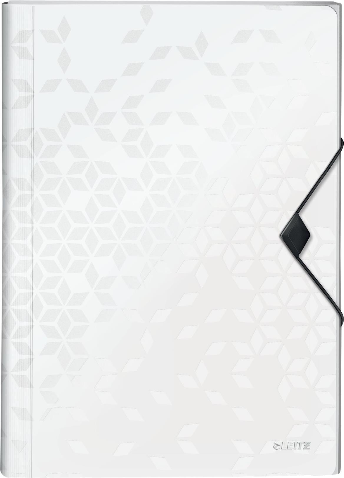 LEITZ Projektmappe WOW, A4, PP, 6 Fächer, weiß-metallic 5 Fächer mit Beschriftungstaben inkl. Beschriftungsschild - 1 Stück (4589-00-01)