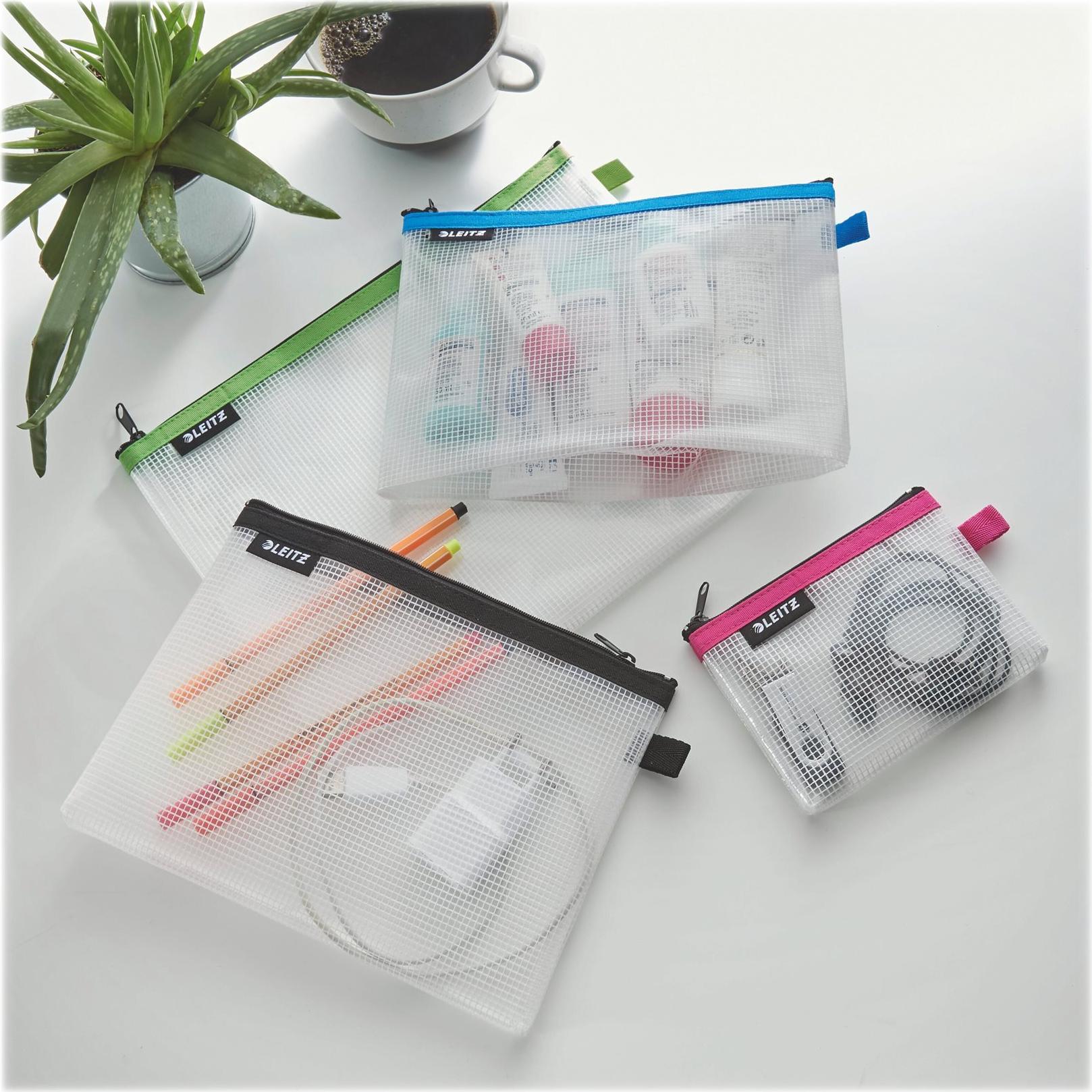 LEITZ Reißverschlusstasche WOW Traveller, 4er Set wasserabweisend, transparenter Beutel mit farbigem Reißver - 1 Stück (4016-00-99)