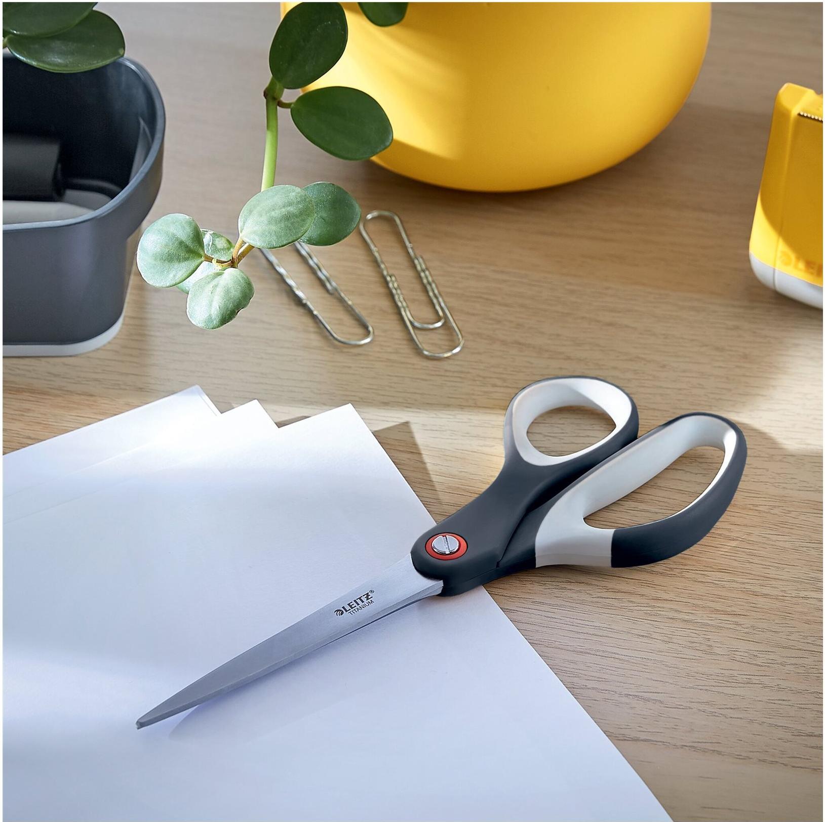 Premium titanbeschichtete, hochwertige Büroschere aus deutschem Edelstahl. Die haltbaren, titanbeschichteten Klingen bleiben viel länger scharf als Standardklingen. Der bequeme ergonomische Softgriff und die warmen Cosy-Farben machen diese Schere ideal für den Einsatz im Büro und zu Hause, damit Sie sich den ganzen Tag über entspannt und produktiv fühlen. Fühlen Sie sich mit dem Cosy Sortiment von Leitz wie zu Hause, wo auch immer Sie sind. Mit seinem minimalistischen Design und den einladenden Farben können Sie Ihrem Arbeitsbereich Stil und Farbe verleihen.