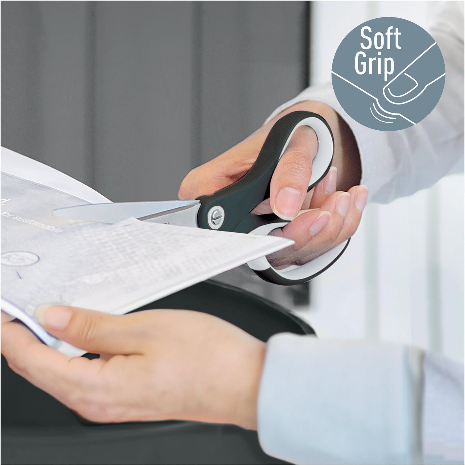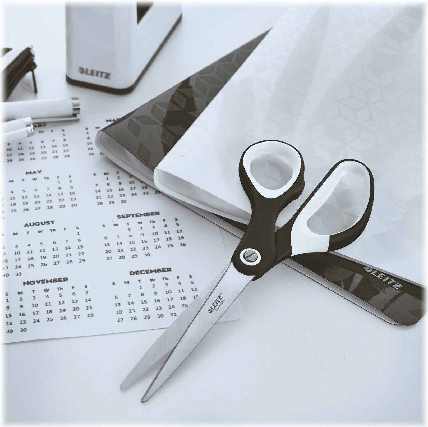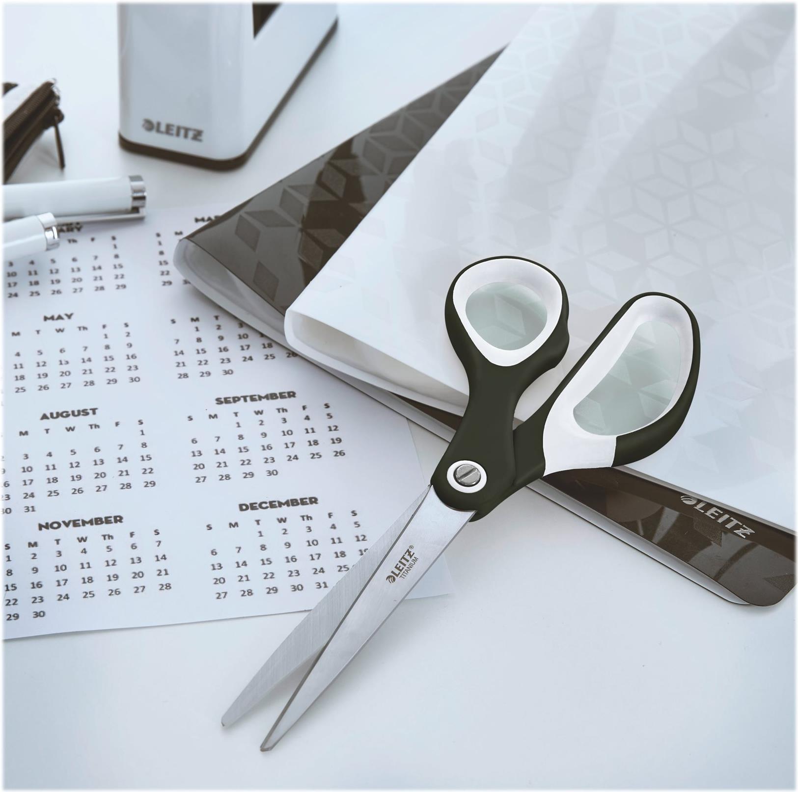 LEITZ Schere WOW Titan, Länge: 205 mm (8"), schwarz-metallic für Rechtshänder, titanbeschichtete, rostfreie Premium - 1 Stück (5319-20-95)