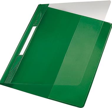 LEITZ Schnellhefter Exquisit, DIN A4 Überbreite, PVC, grün PVC-Hartfolie, Vorderdeckel transparent, mit Beschriftungs- (4194-00-55)