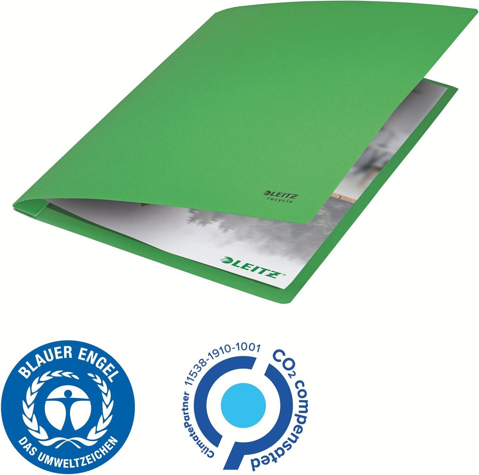 LEITZ Schnellhefter Recycle, DIN A4, Karton, grün aus 100% recyceltem Karton, 100% recyclebar, Blauer Engel, - 10 Stück (39040055)