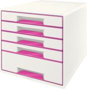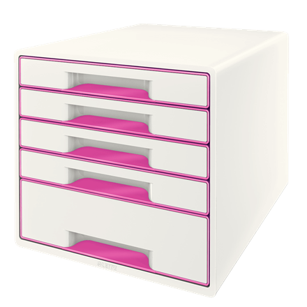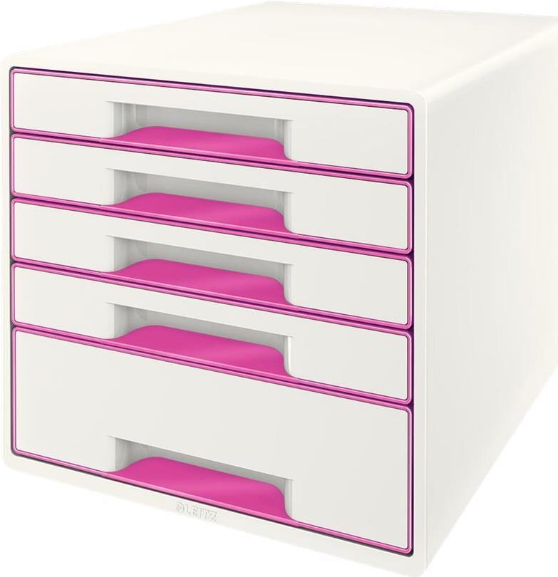Esselte-Leitz LEITZ Schubladenbox WOW CUBE, 5 Schübe, perlweiß/pink für Format DIN A4 Maxi, Hochglanz, Schubladen mit Auszugs - 1 Stück (5214-20-23)