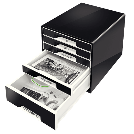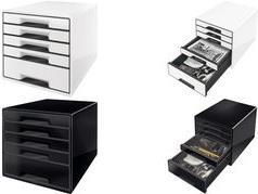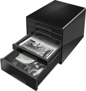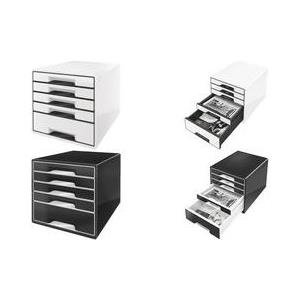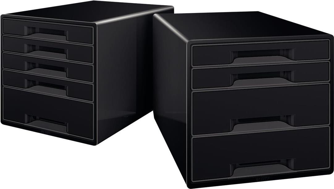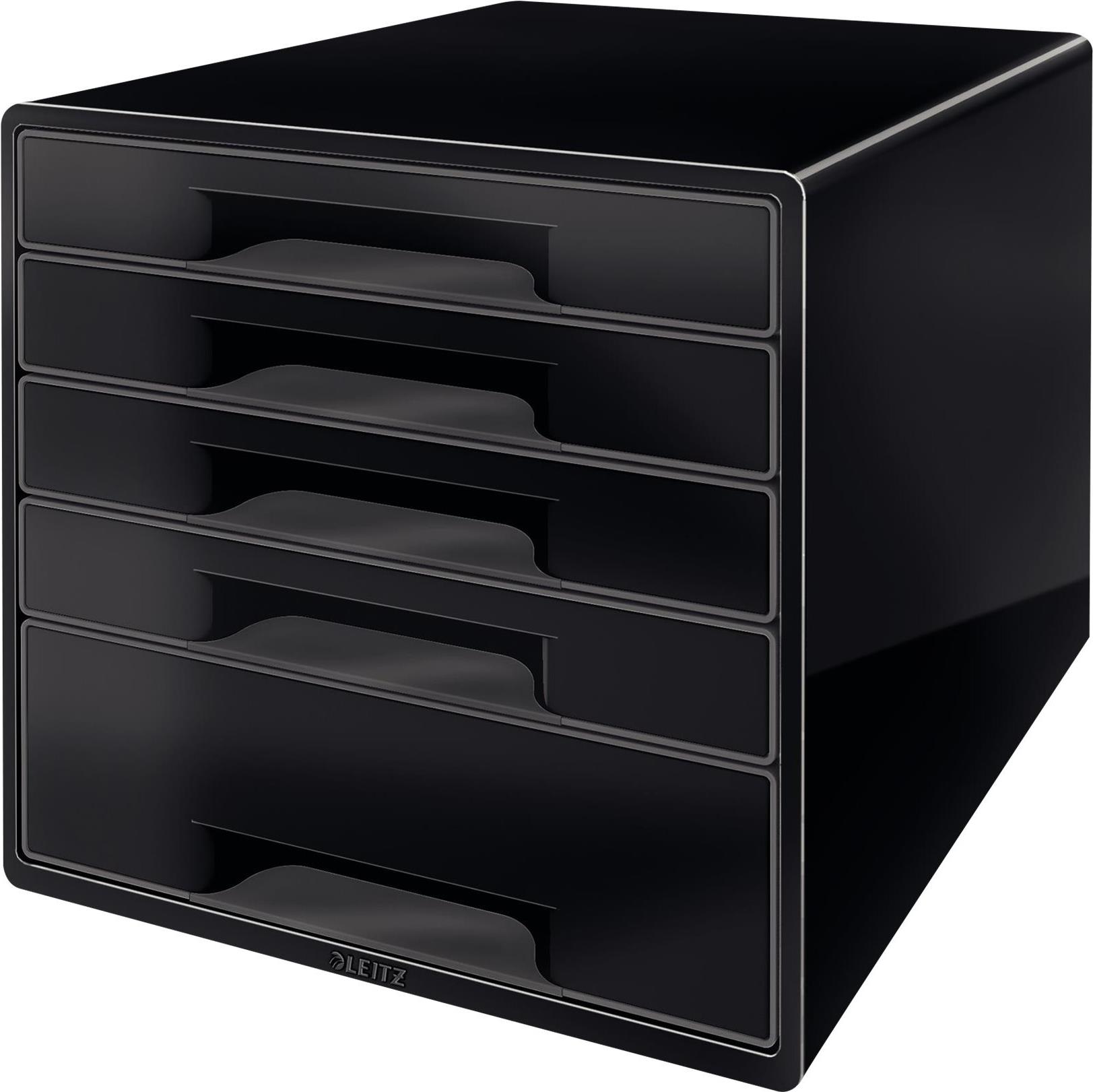 Esselte-Leitz LEITZ Schubladenbox WOW CUBE, 5 Schübe, schwarz/dunkelgrau für Format DIN A4 Maxi, Hochglanz, Schubladen mit Auszugs - 1 Stück (5253-10-95)