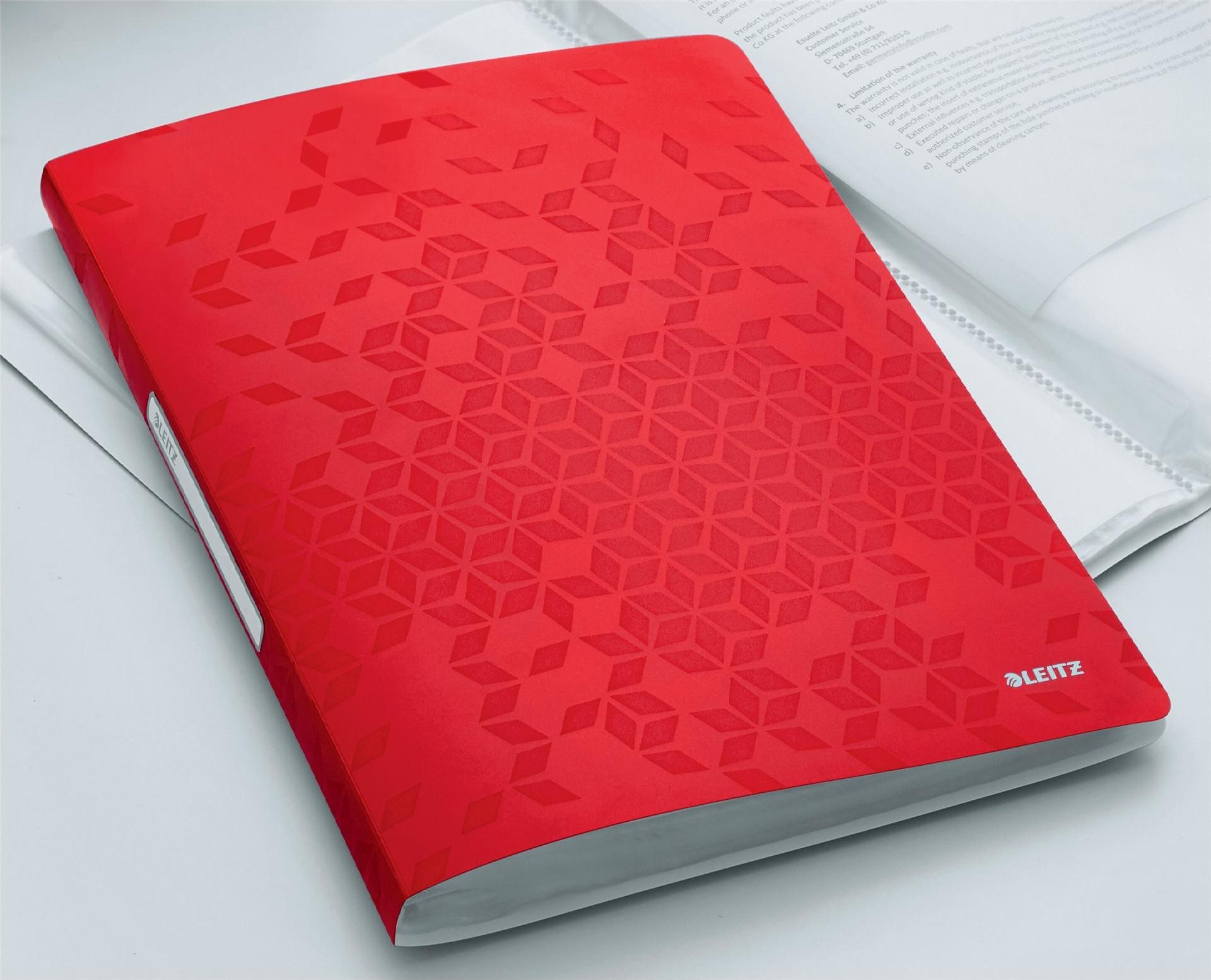 LEITZ Sichtbuch WOW, A4, PP, mit 20 Hüllen, rot laminierte Oberfläche, Oberflächenstruktur mit 3D-Prägung, - 1 Stück (4631-00-26)