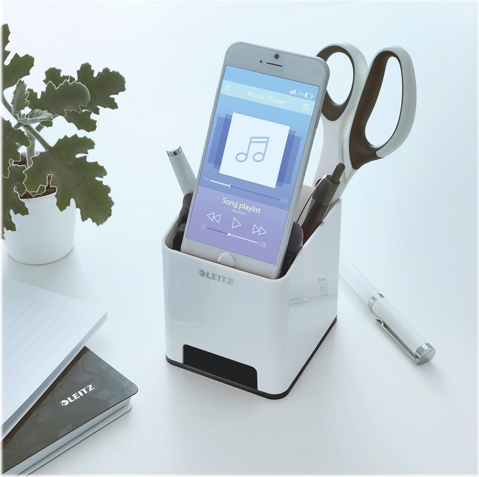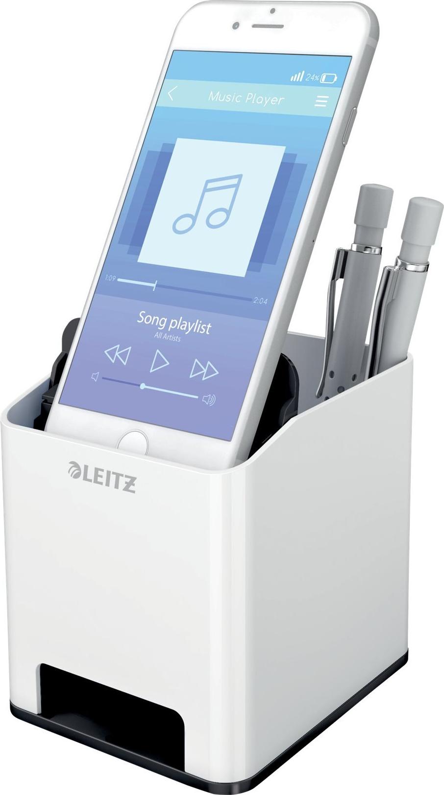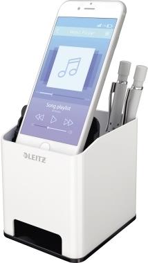 Auffälliger Leitz Stiftehalter in Premium-Qualität mit modernem zweifarbigem WOW Effekt in Hochglanz. Der Design-Stifteköcher mit Soundverstärkungsfunktion passt perfekt zu allen anderen Produkten der Leitz WOW Serie. Modernes, zeitgemäßes Design zu Hause und im Büro.