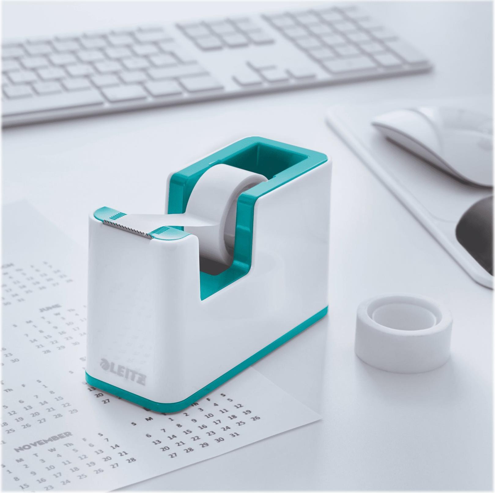 Auffälliger Leitz Klebeband-Abroller in Premium-Qualität mit modernem zweifarbigem WOW Effekt in Hochglanz. Der leicht zu bedienende Tischabroller passt perfekt zu allen anderen Produkten der Leitz WOW Serie. Modernes, zeitgemäßes Design zu Hause und im Büro.