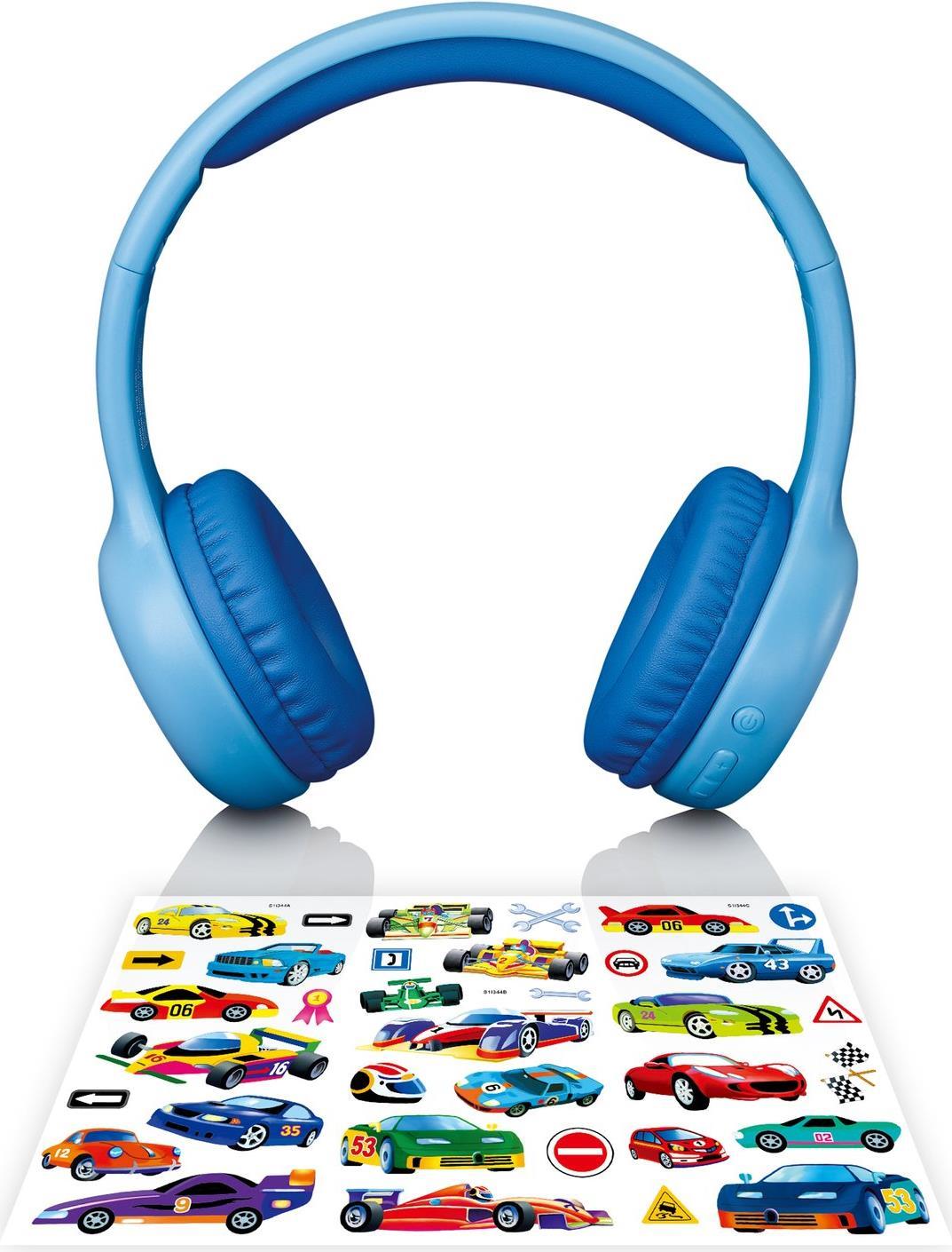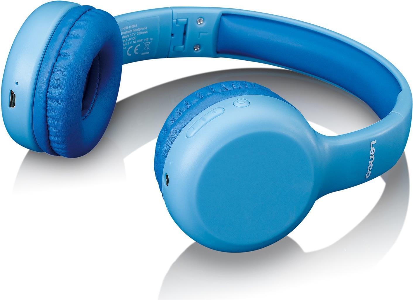 Lenco HPB-110 Kids Kopfhörer BT blau 85DB Limite akku stickers Kopfband 3,5-mm-Anschluss Mikro-USB Bluetooth (HPB-110BU)