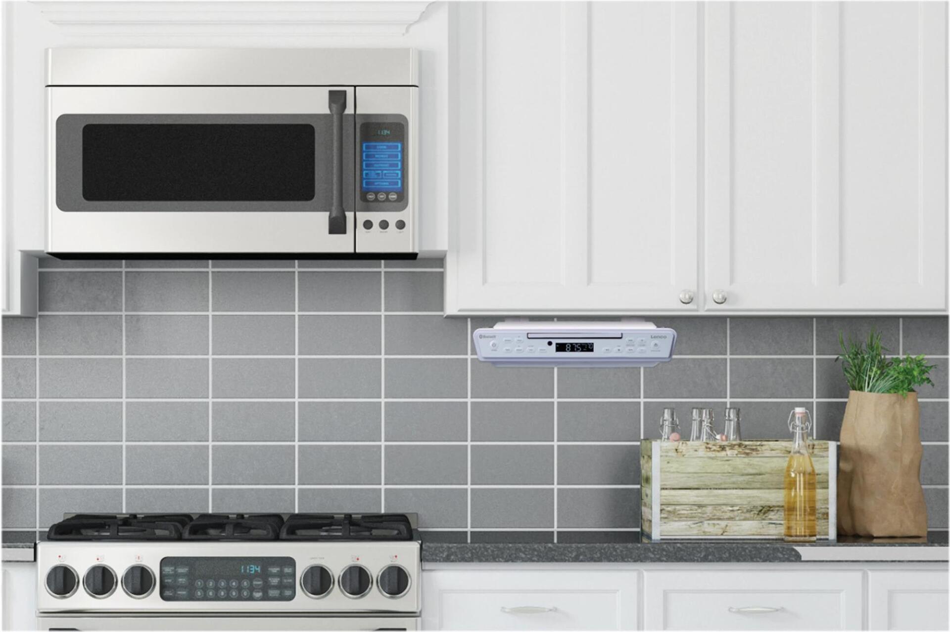 Das Lenco KCR-150 ist ein modernes Küchenradio mit einem schlanken Design. Durch die übersichtlich angeordneten Knöpfe und den deutlichen Bildschirm ist das Radio einfach zu bedienen. Sie können viele Radiosender und CDs anhören, aber auch Ihr Smartphone oder Tablet via Bluetooth verbinden.