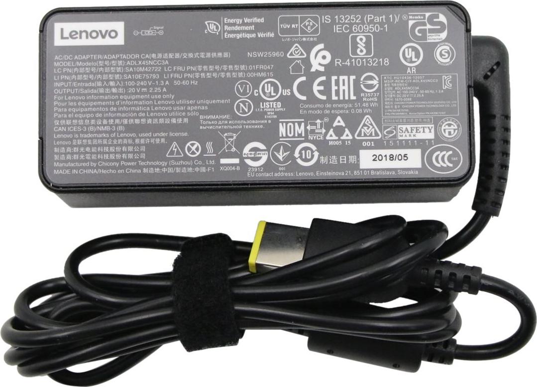 Lenovo Chicony ADLX45NCC3A - Netzteil - Wechselstrom 100-240 V - 45 Watt - FRU (CRU) - Tier 1 - für P/N: 4XB0M13789 (00HM615)