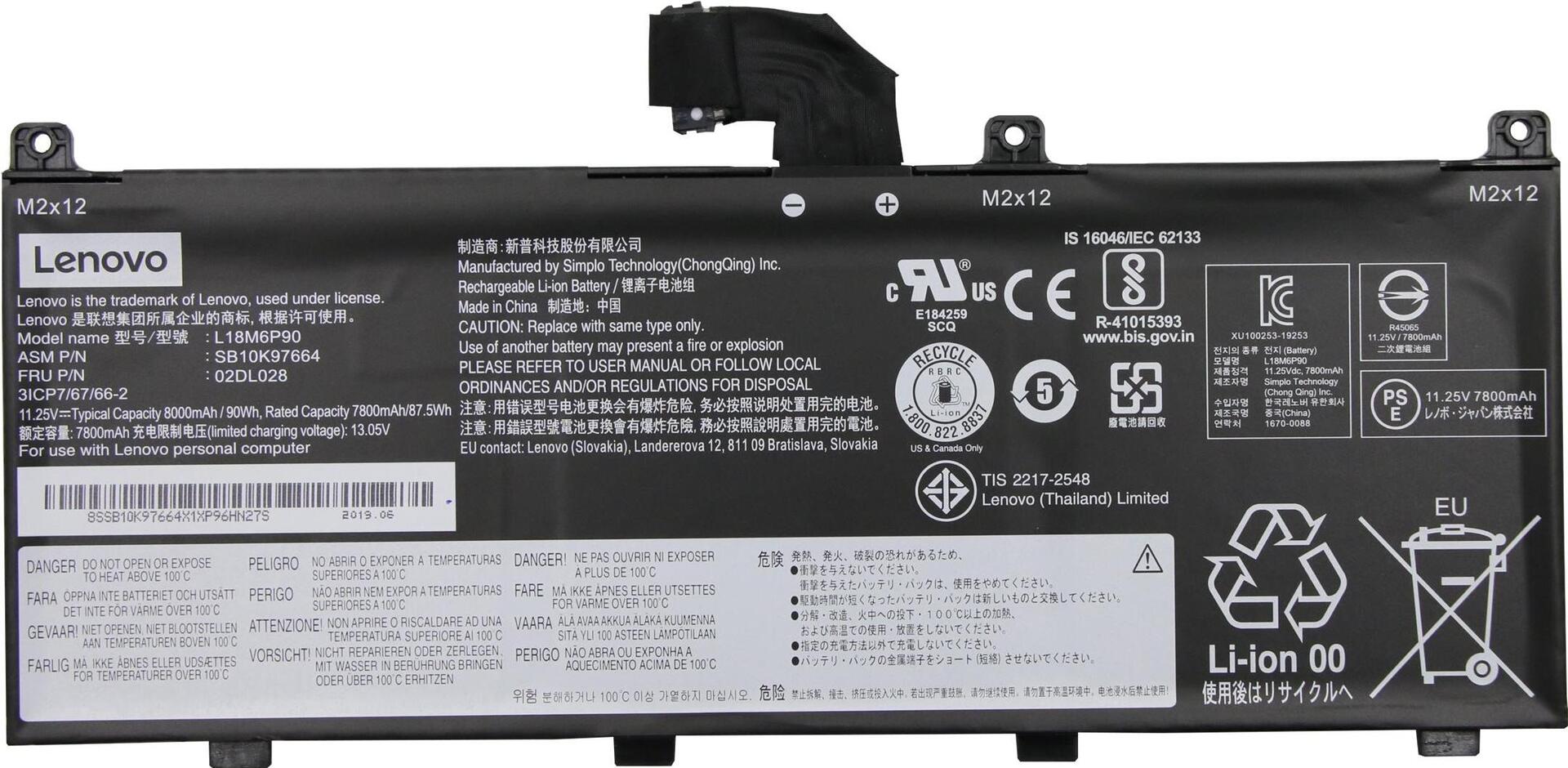 Lenovo Simplo - Laptop-Batterie - Lithium-Ionen - 6 Zellen - 8000 mAh - 90 Wh - FRU - für ThinkPad P53 20QN, 20QQ (5B10W13901)
