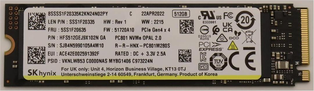 • Lenovo SSD 512GB M.2 2280 PCIe4x4 SKH OP (5SS1F20635)