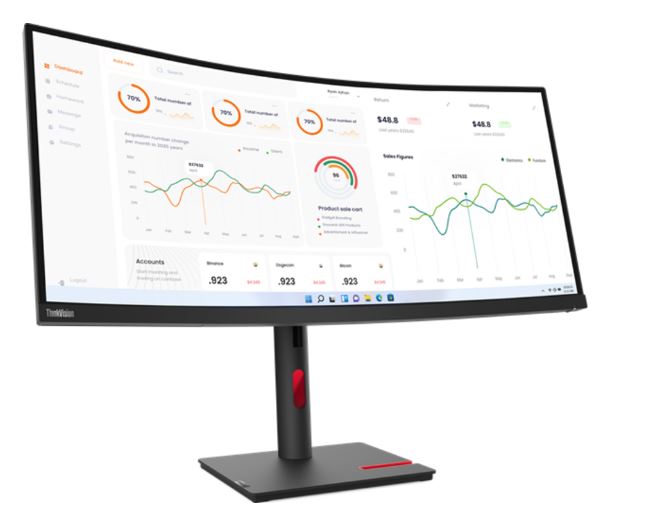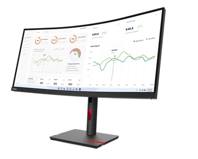 Der GThinkVision T34w-30 Monitor ist ein nahezu kantenloses, immersives 86,40cm (34") -WQHD-Curved-Display an 3 Seiten. Mit einer Auflösung von 3440 x 1440 können Sie all die feineren Details aufnehmen. Ein Seitenverhältnis von 21:9 sorgt für ein Panoramaerlebnis, während eine Krümmung von 1500R eine konsistente Brennweite über den gesamten Bildschirm liefert. Es ist ein Augenschmaus mit satten, lebendigen Farben, die durch einen sRGB-Farbraum von 99% zum Leben erweckt werden. Sorgt auch für Ihre Sehkraft mit der Natural Low Blue Light-Technologie, die schädliche blaue Lichtemissionen ohne Farbverzerrungen reduziert. Es ist auf Effizienz ausgelegt und verfügt über eine Vielzahl von Konnektivitätsoptionen, darunter USB-Type-C, HDMI- und DP-Ports, modulare VoIP-Unterstützung für Videokonferenzen oder Audio mit KI-erweiterten MC60- und MS30-Ports und ein effizientes Netzwerk Verwaltung mit MAPT, PXE und WOL (S3-S5). Der erweiterte Hubbereich gibt ihm mehr Flexibilität, um die Arbeitshaltung einzunehmen, die Sie am bequemsten finden. Es bietet Platz für einen Telefonhalter mit offenem Steckplatz, der auch tablets unterschiedlicher Größe unterstützt, um alle Ihre Bildschirme im Blickfeld zu haben, während eine sauberere Kabelführung zu einem aufgeräumten Schreibtisch beiträgt. Wenn Sie nach einem saubereren Schreibtisch suchen, können Sie diesen Monitor auch mit VESA montieren. Sein Ein-Knopf-Joystick für schnellen Zugriff auf die Display-Steuerung gibt Ihnen Zugriff auf Ihre Fingerspitzen. Es wird Sie freuen zu hören, dass der T34w-30 die ökologischen und gesundheitlichen Standards der TCO 9.0-Vorschriften erfüllt.